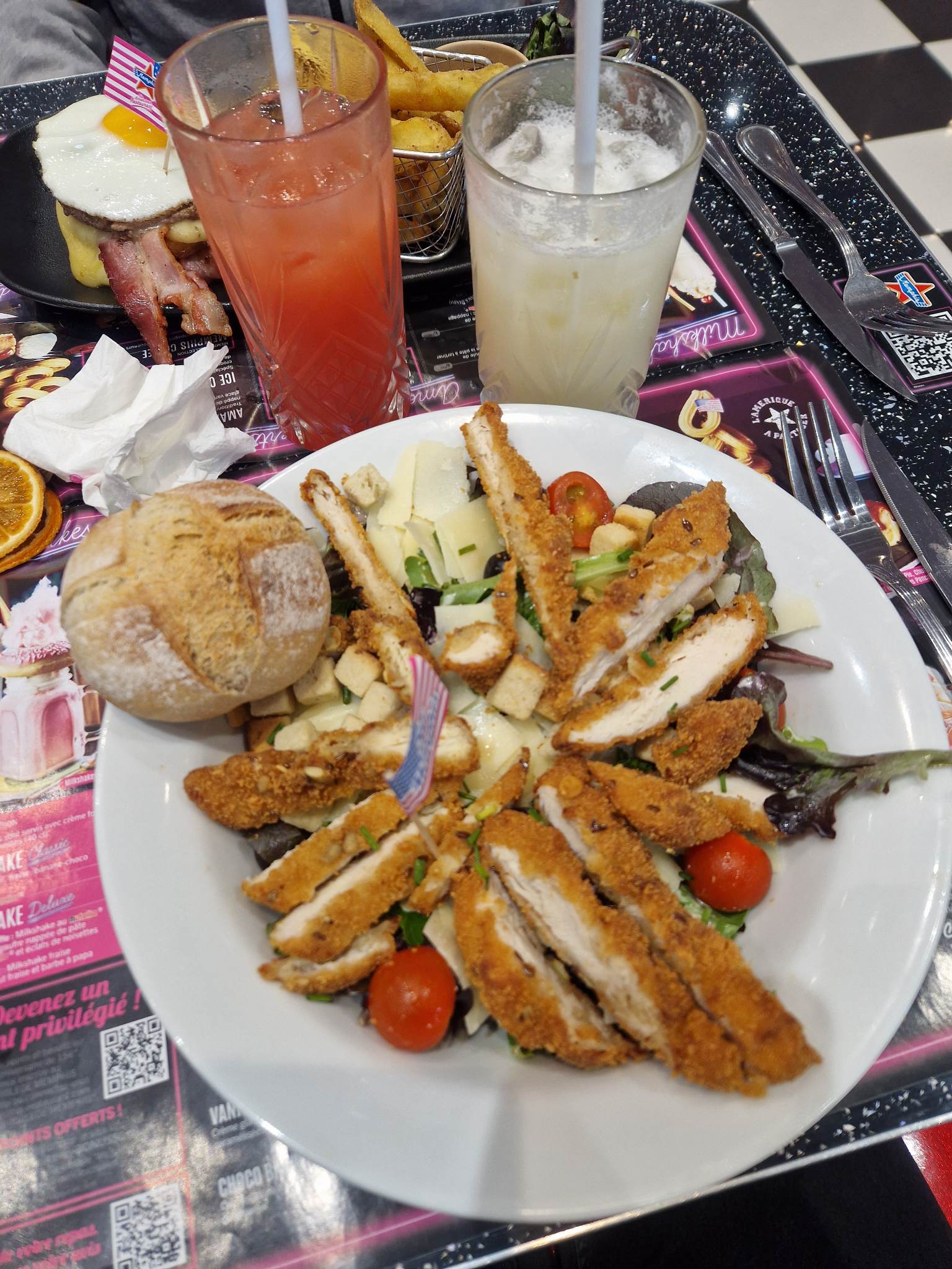 Nous y allons souvent c’est un très bon restaurant le thème année 50s et très jolie On y mange toujours bien je recommande ce restaurant a tous