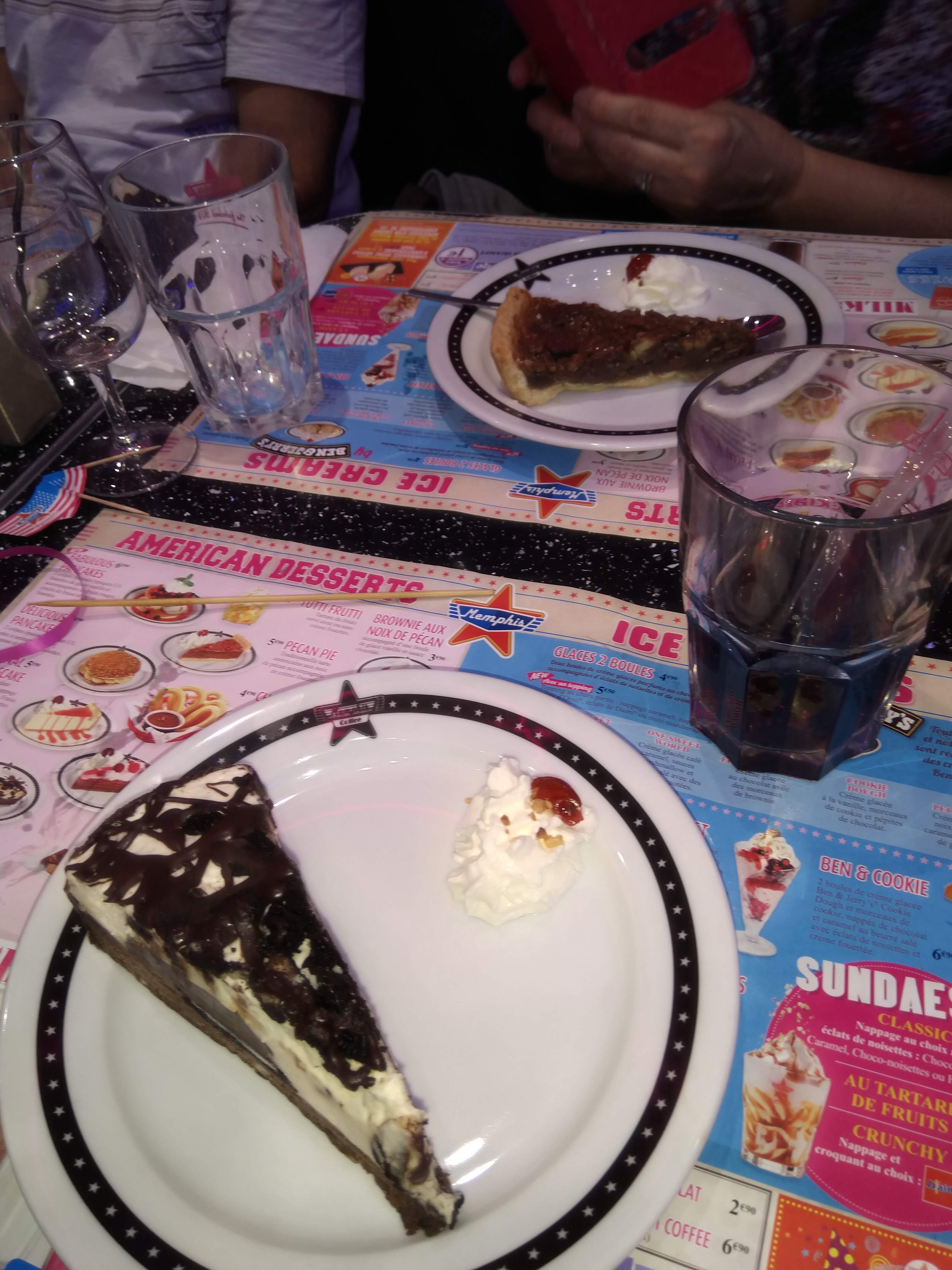 Je passais un bon moment jusqu'à ce que je choisisse le dessert. J'ai pris un menu happy days entrée plat dessert Je demande un autre nappage sur le sundae deluxe (celui du menu est nutella kinder). Les diverses variétés proposées à la carte sont à 7.95 euros La concept menphis interdit la modification du choix du nappage pour une question de prix ! Pouvez vous fournir d'autres explications moins absurdes que celle du prix ? Jusque là j'avais plaisir à venir. Je ne pense plus revenir, le concept est trop rigide. En revanche la serveuse très agréable était dépitée. Elle a tenté de faire modifier ce fut un non définitif de la part de sa hiérarchie. Elle est revenue me voir me demandant si c'était bon qd mm. Pour lui être agréable j'ai dit oui mais j'ai passé une mauvaise fin de repas.