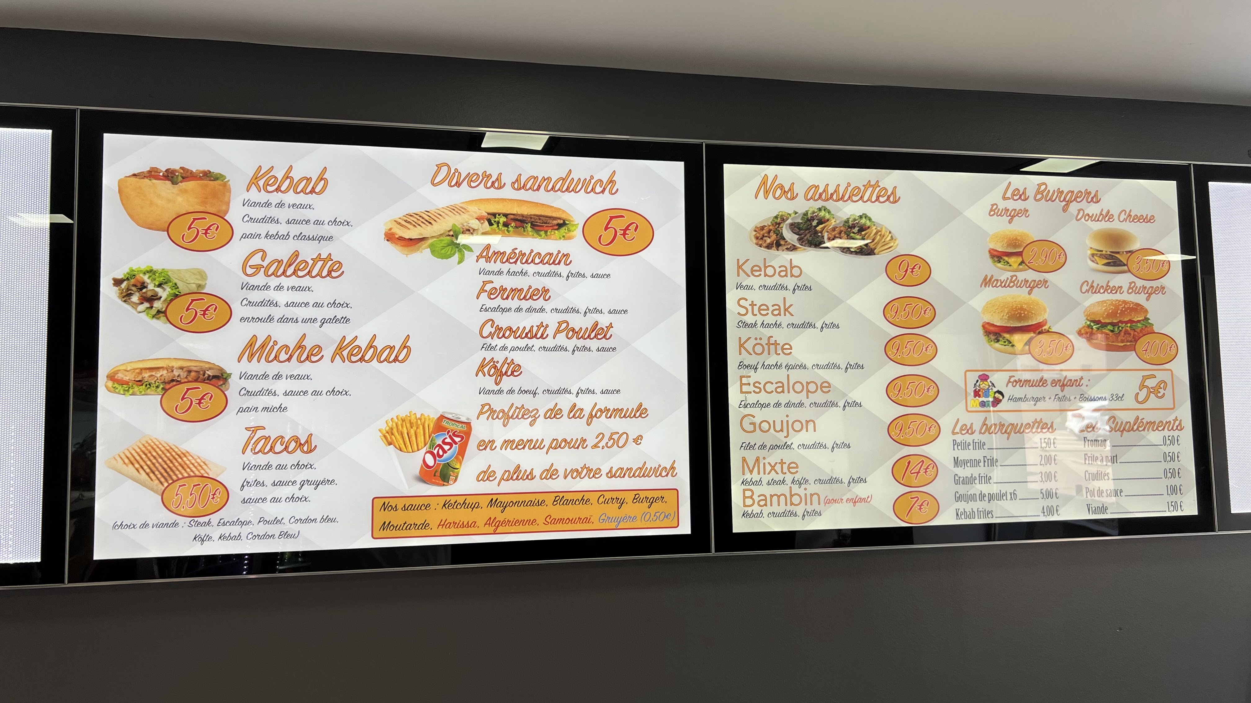 Kebab et tacos très bon large choix de viande et de sauce .le personnel est très sympathique
