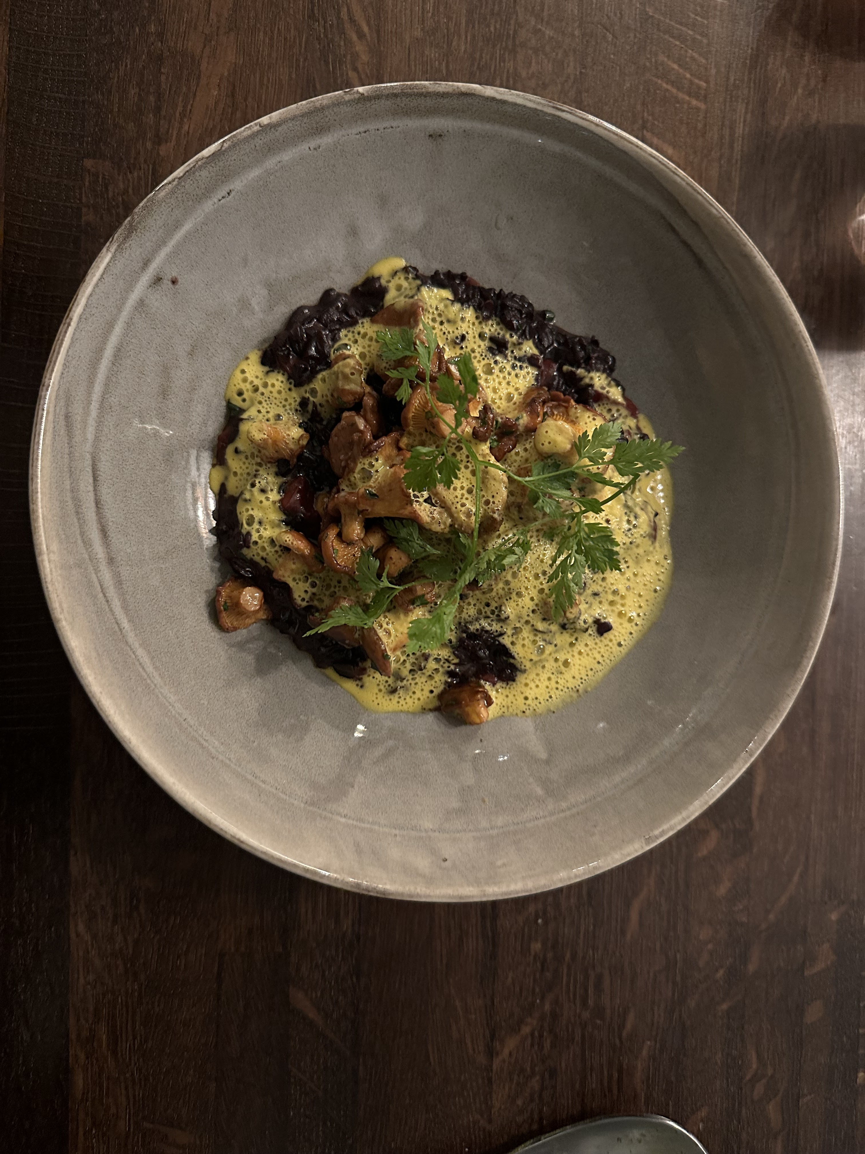 Expérience culinaire inédite! Voyage d'exception autour d'un risotto Carnaroli, gambas, lard et girolles! Une mention spéciale pour la mousse au chocolat pralinée aérienne et succulente. Bravo au chef.