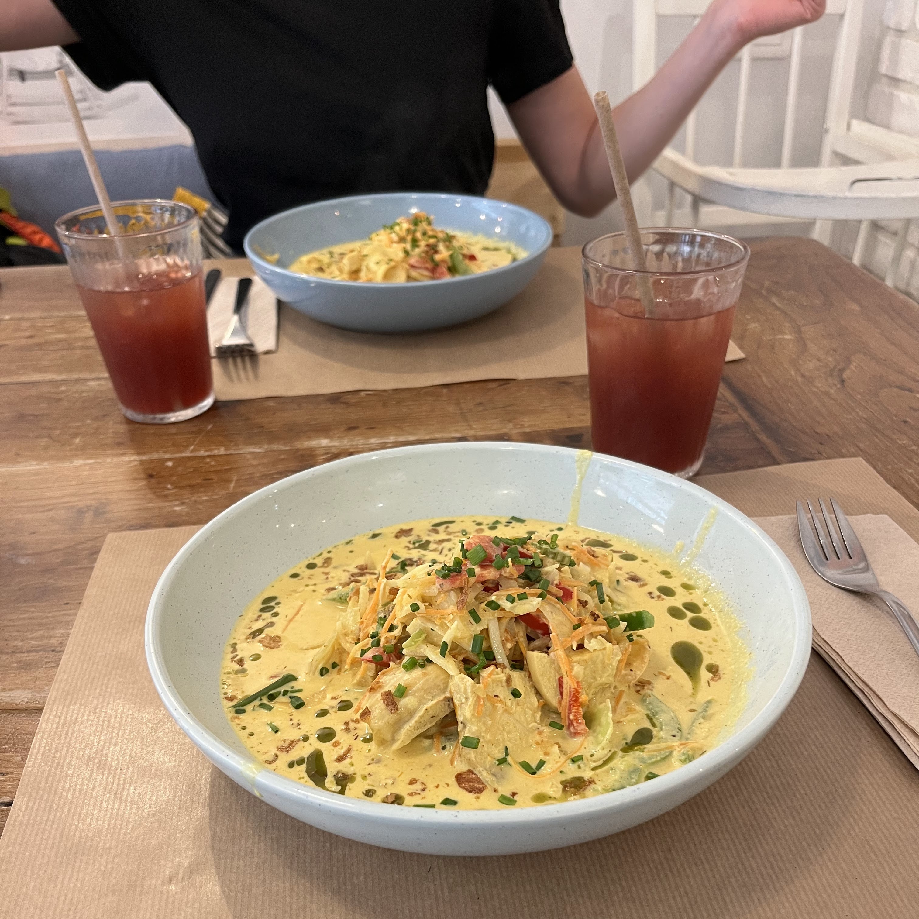Tout était excellent ! Du woke de poulet type curry, au jus maison au dessert tiramisu speculos-caramel. Le concept est super cool, on y mange, on y boit, on y prend un gouter, on y achète des petites choses, j'adore ! En plus le patron est très sympathique ! Bref parfaite expérience ! Merci beaucoup 🙏✨ Les pouces 🌎