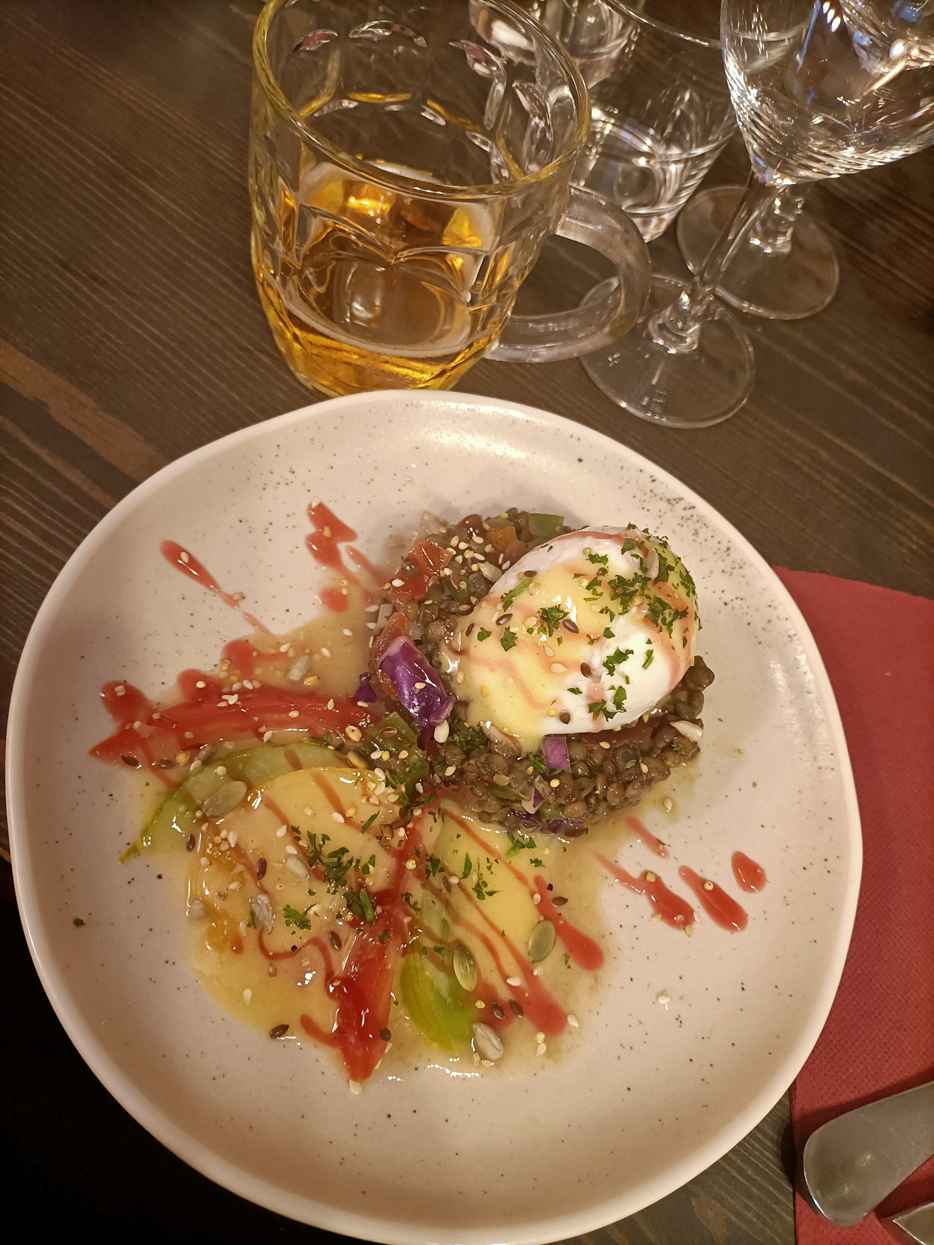 Le cidre (5°) à la pression est excellent, il m'a régalé au format d'une pinte ! L'entrée de lentilles est super, le tout joliment présenté dans l'assiette. Très bon moment passé dans cet établissement.