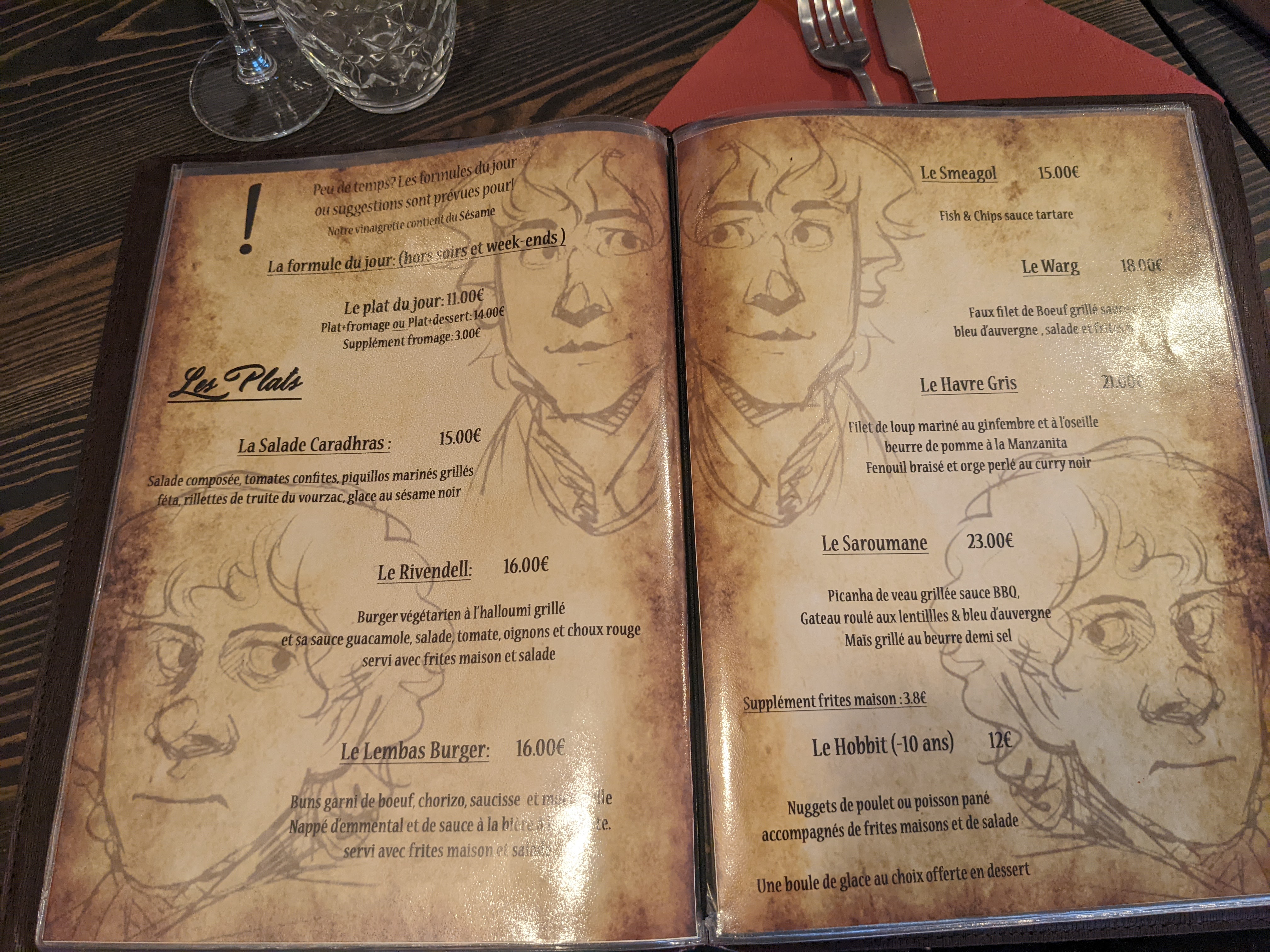 Super restaurant plongé dans l’univers du Seigneur des Anneaux. Plats savoureux, originaux et recherchés, service parfait, très bon rapport qualité-prix !