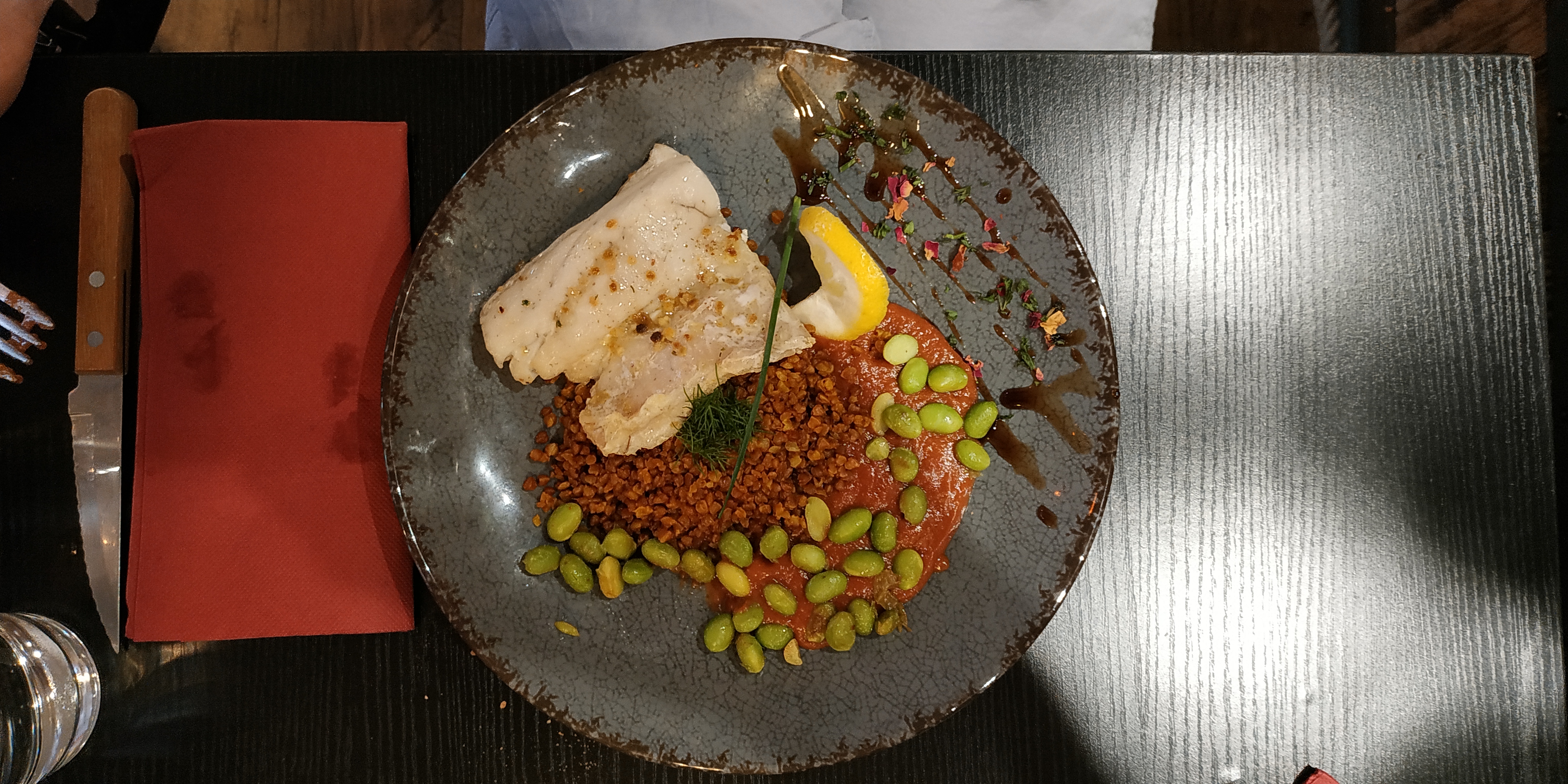 De l'accueil jusqu'à la fin du repas. Des entrés jusqu'au dessert. Tout était parfait. Le professionnalisme, la réalisation, le goût... Tout était parfait. Je recommande grandement et le prix reste très attractifs pour la qualité. La seul petite critique est que je n'ai pas trop ressenti l'esprit seigneur des anneaux dans la déco.