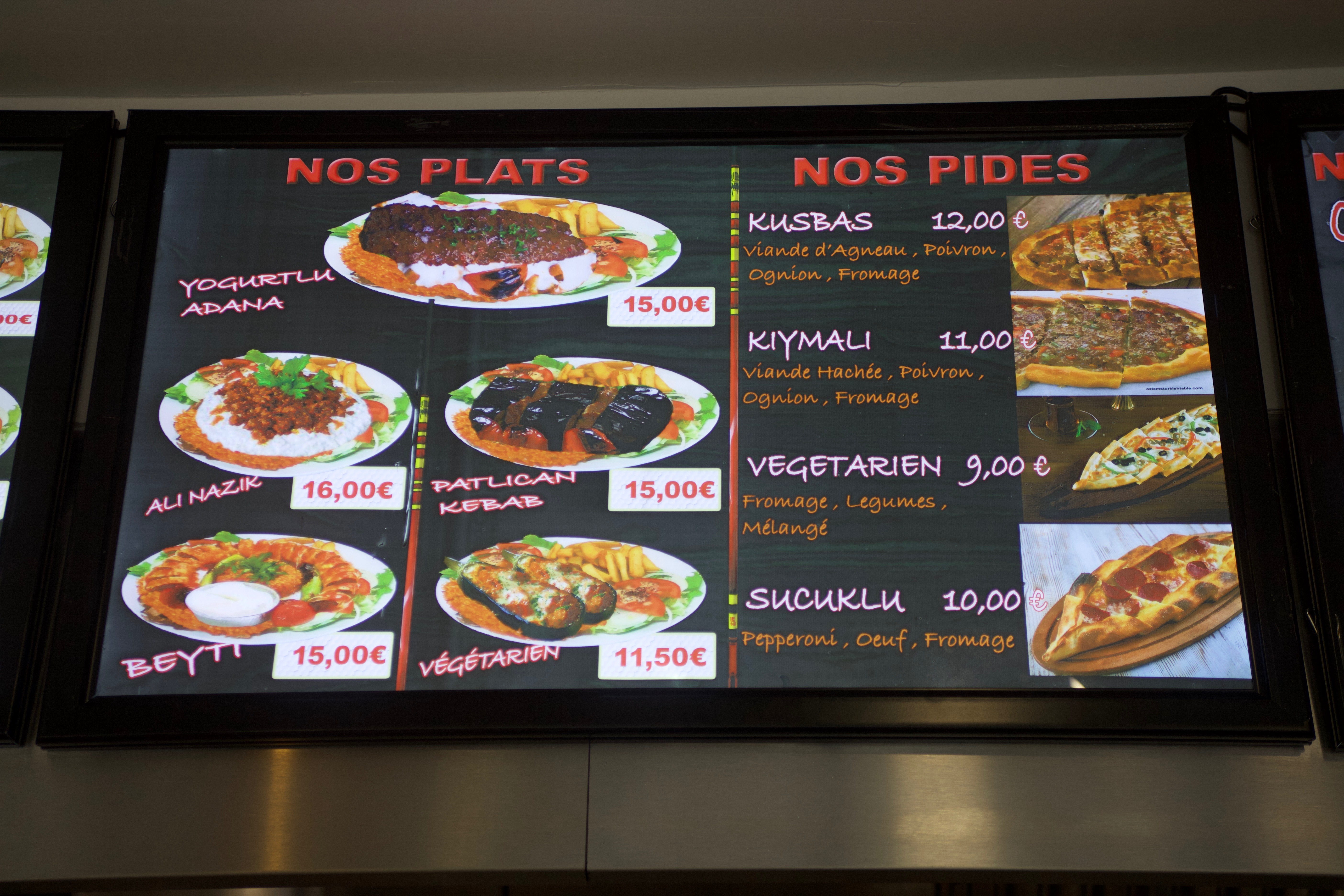 Spécialités turcs. Endroits très propre. Personnel très accueillant et souriant. Prix correctes. J'ai pris un doner kebab à emporter. Viande bonne et bien assaisonnée, juste une petite remarque pour les propriétaires peut être un peu trop de gras et peut être faire un effort sur la qualité des frites mais je mets tout de même 5 étoiles pour les encourager.