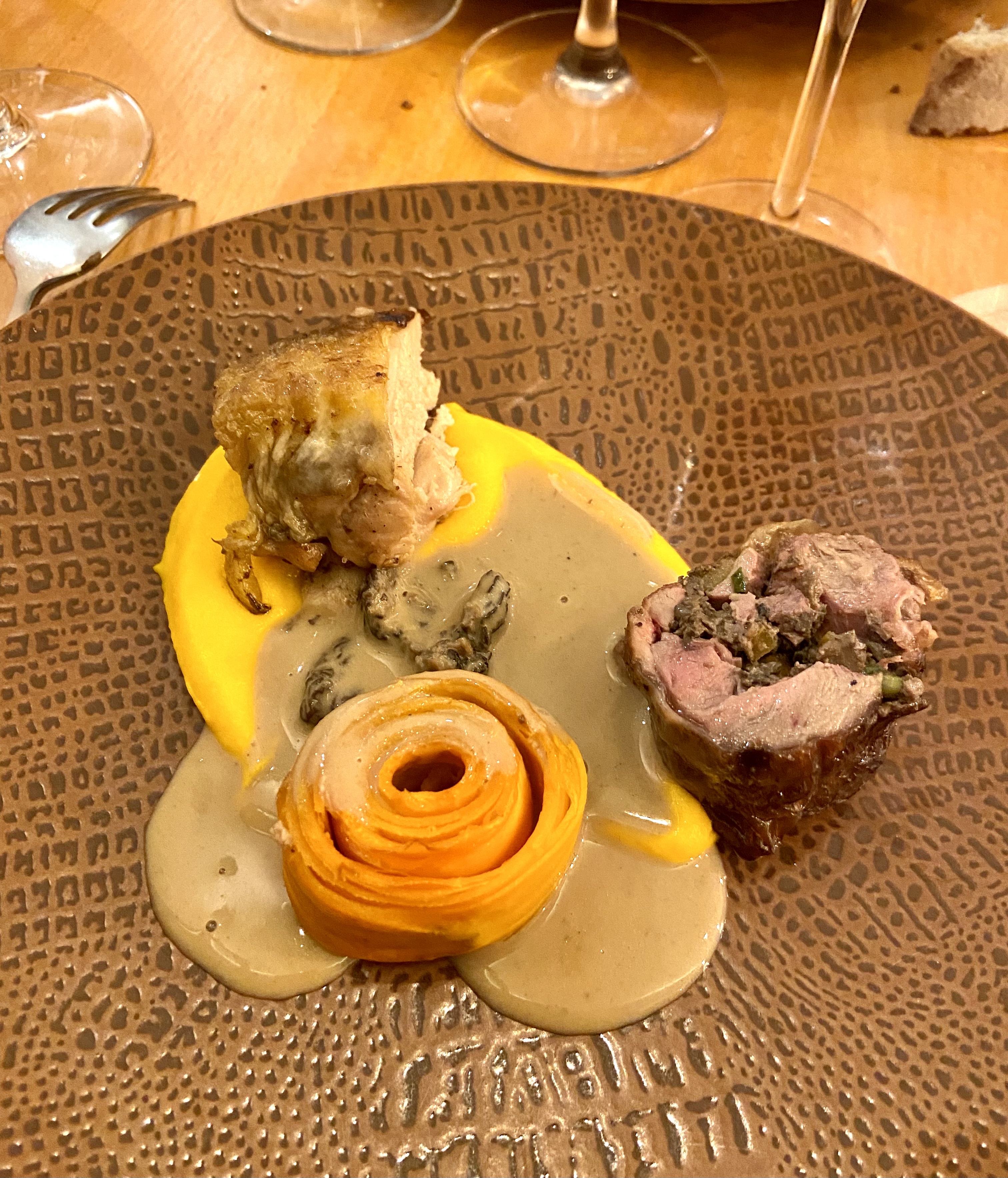 Franchement il n’y a pas de mots. Juste des goûts des odeurs des ambiances des saveurs des mélanges des plats et des mets d’exception. Ça a été un moment d’une régalade extraordinaire du début à la faim 😋 encore merci chef. On était bien !