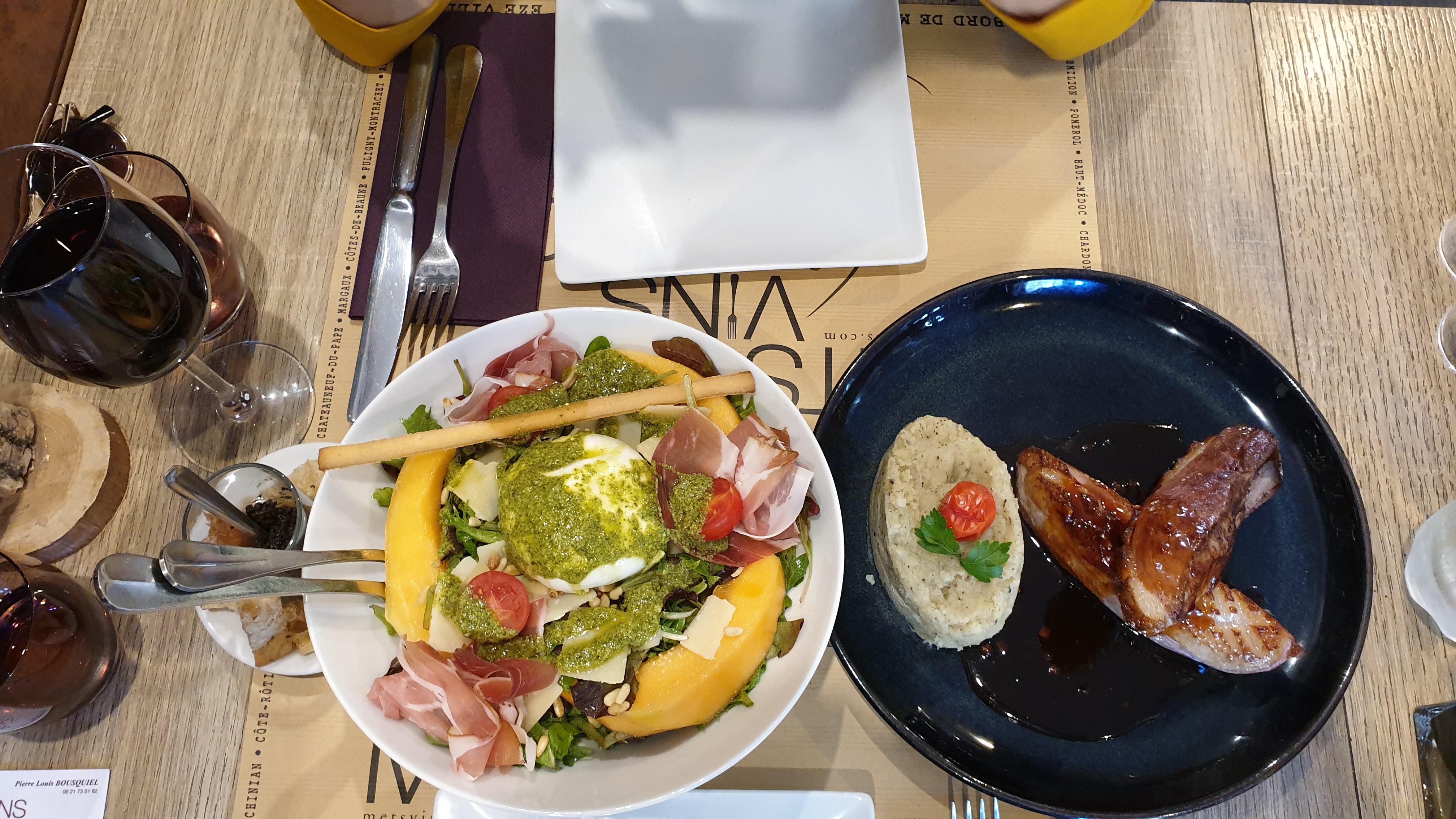 Super resto ! Nous avions faim après la visite de Fragonard, j'ai commandé une bonne salade, nicoise revisitee, mon chéri une bruschetta ! Et en plus un bon vin !