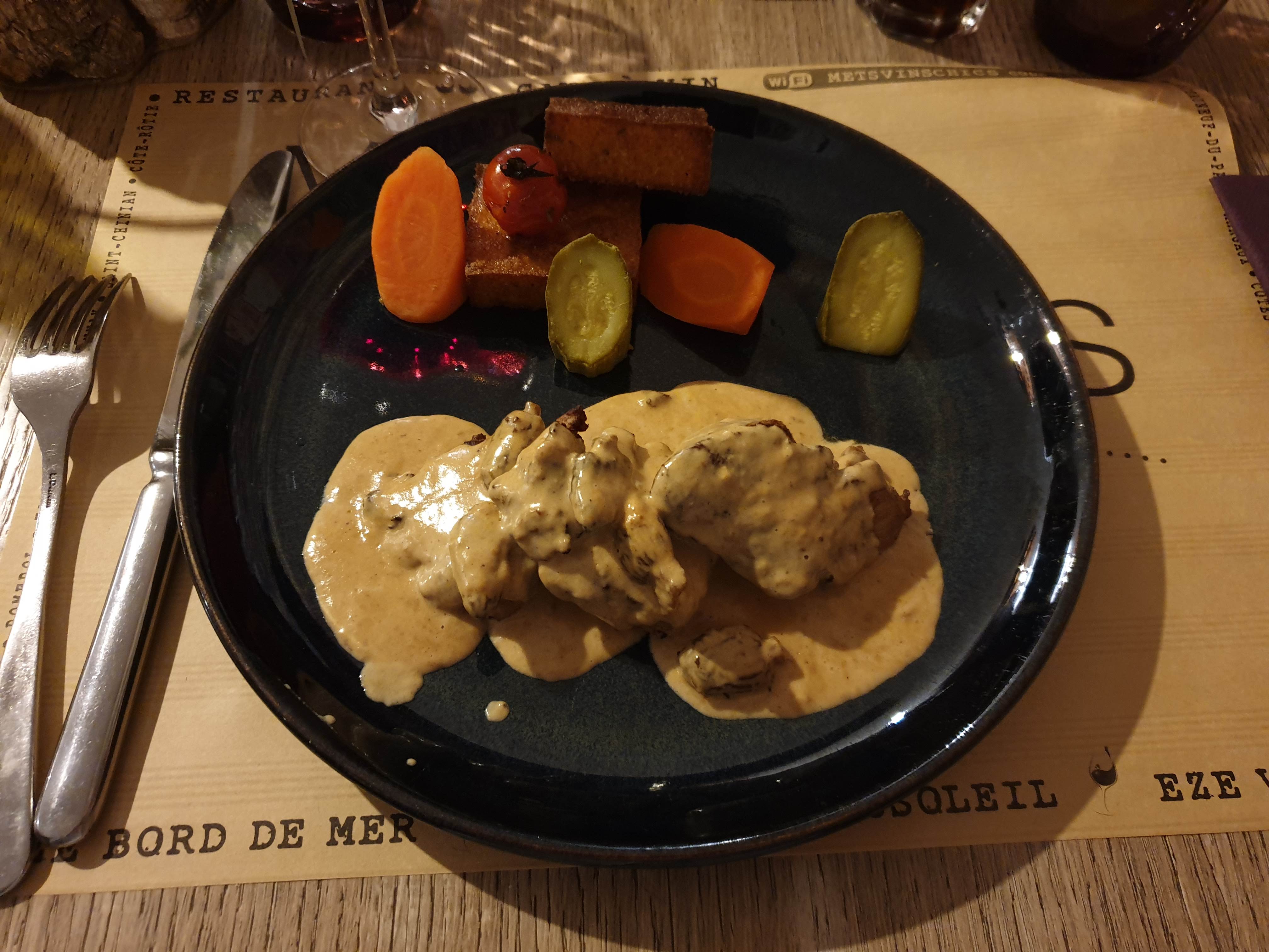 C'est un restaurant à un bon rapport qualité-prix, au pied du village d'Eze, à deux pas de la gare routière. Le service était rapide et attentionné. Je recommanderais de prendre le canard avec une purée de pommes de terre aux truffes. C'était à tomber par terre !