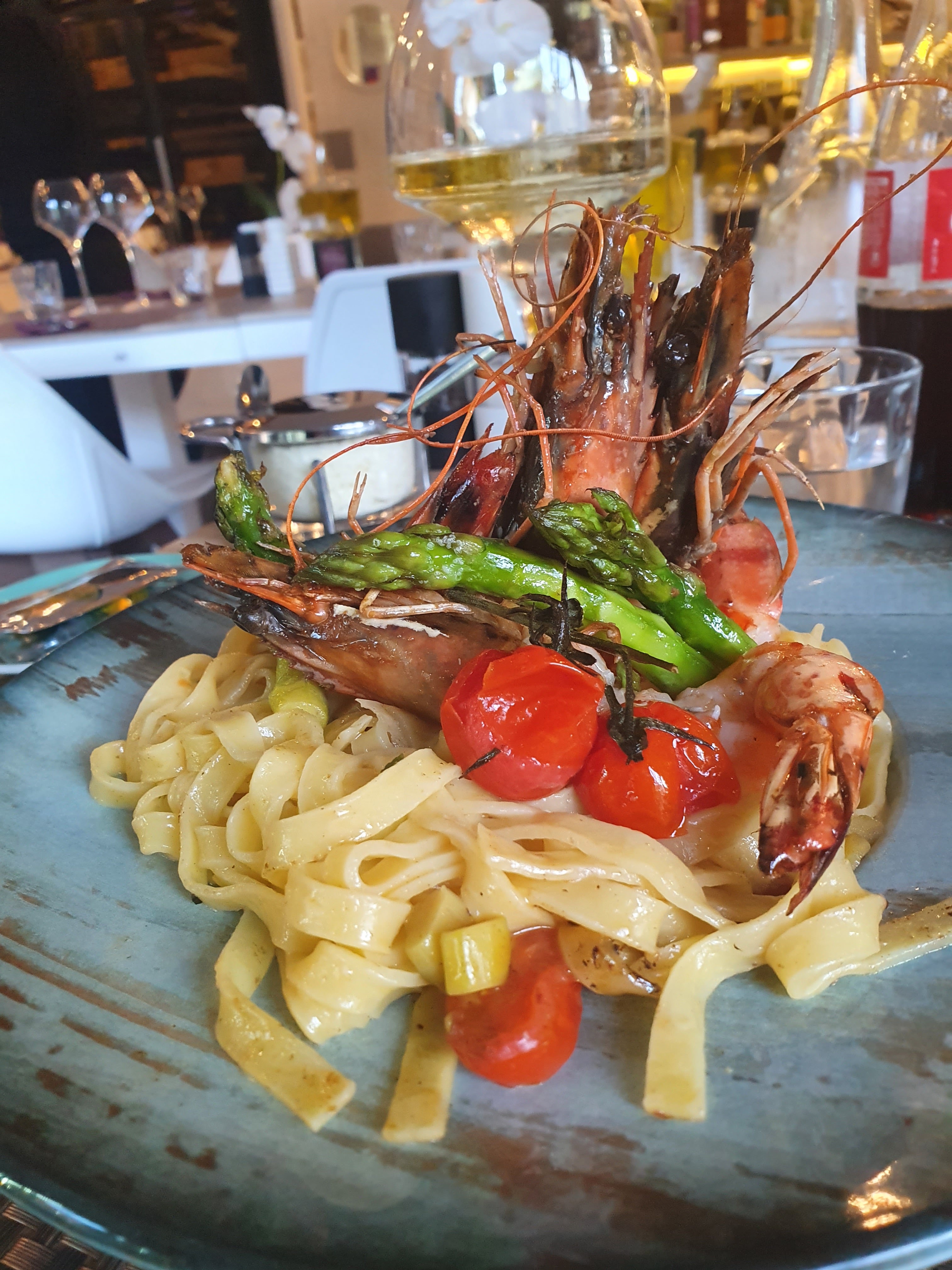 Nous avons déjeuné dans ce restaurant et c’était une très belle surprise ! Très bonne cuisine, nous nous sommes régalés. Le service était très bien également et le restaurant n’était pas bondé c’était très agréable. La décoration à l’intérieur du restaurant est très jolie, le mur de bouteilles est une idée géniale ! Nous recommandons !