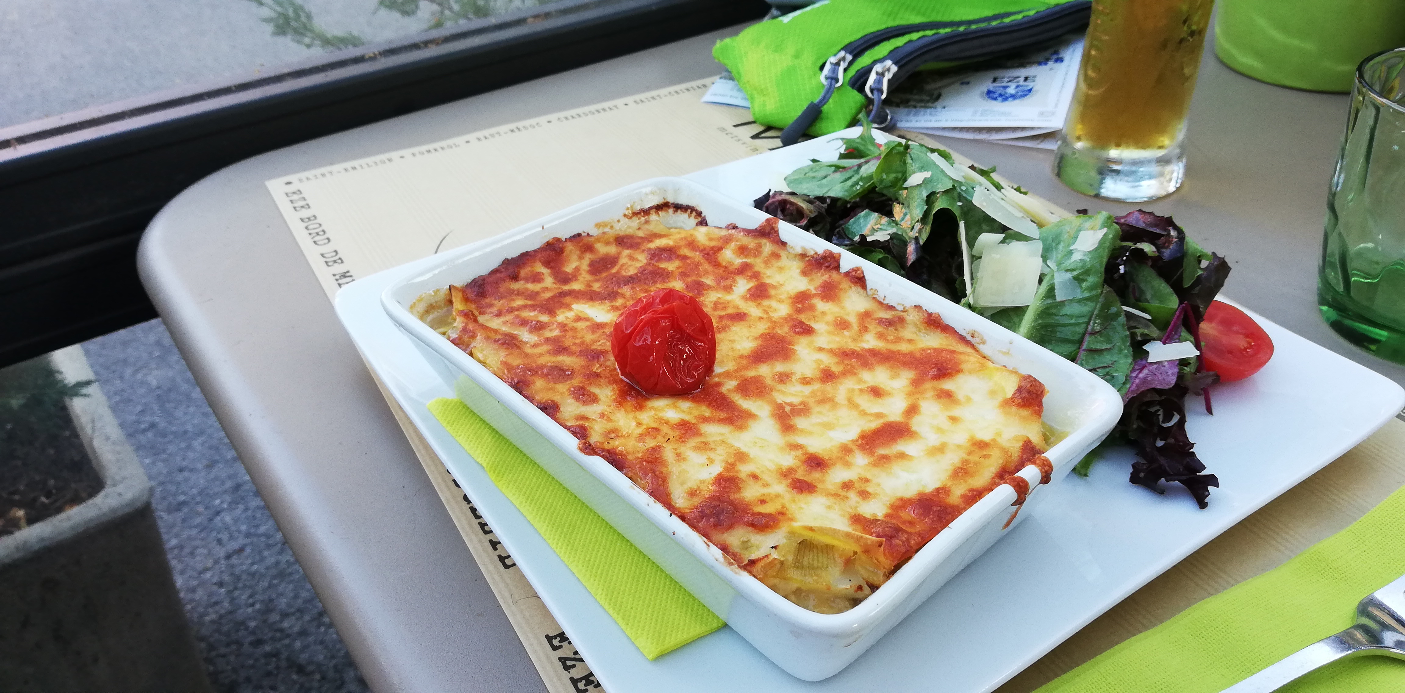 Une expérience si merveilleuse, ma salade grecque? miam et la lasagne étaient super. Desserts au champagne 🍾.
