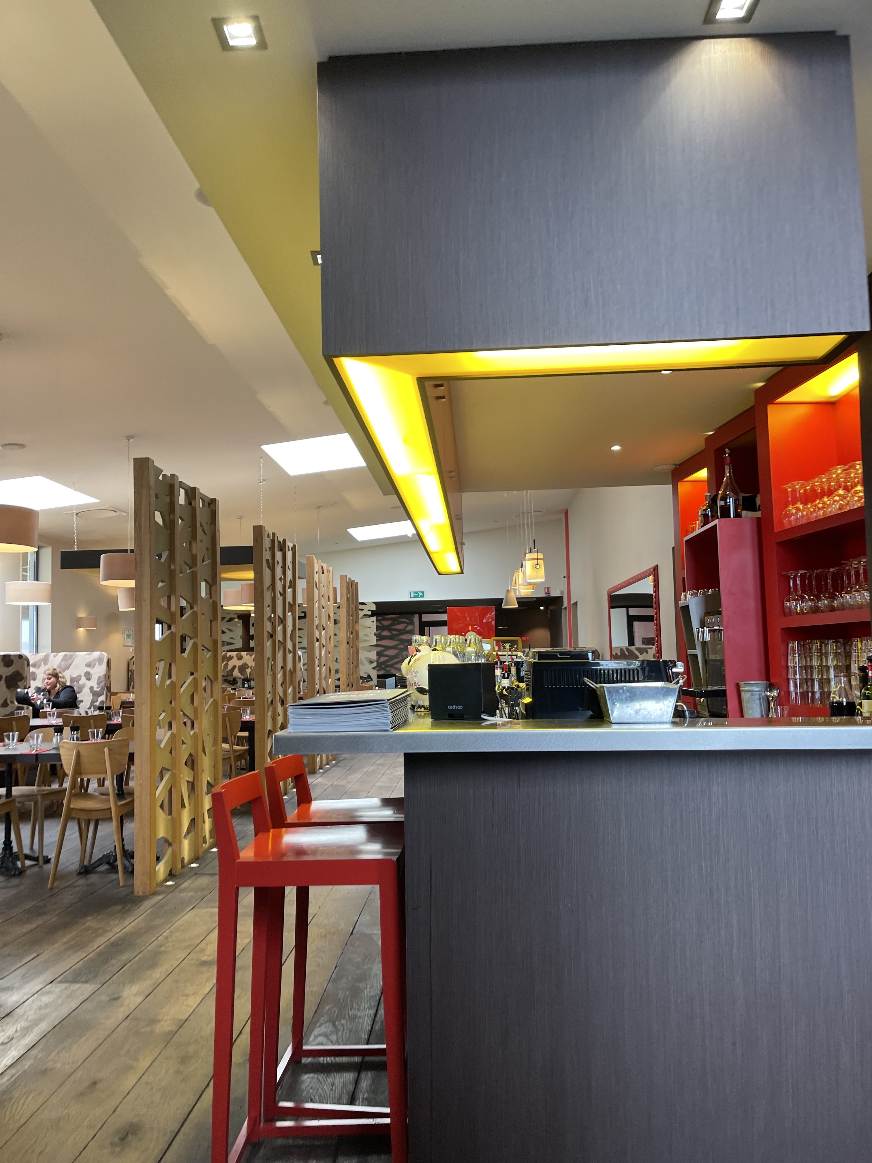 Bel endroit mais... Un peu bruyant encore cela passe... Le pire... 45 minutes pour être servi... Au bout de deux réclamations on nous explique qu'il y a eu un problème informatique... Que sur nous... Puisque tout le monde était servi normalement.. Enfin c'est comme ça.. Enfin les deux assiettes arrivent, mais là nous constatons que la viande est froide... Nous avons mangé ainsi nous avions assez faim... La servante nous a offert une mousse choco en guise de compensation.... Merci madame mais je pense que nous n'y retournerons plus.... Dommage...