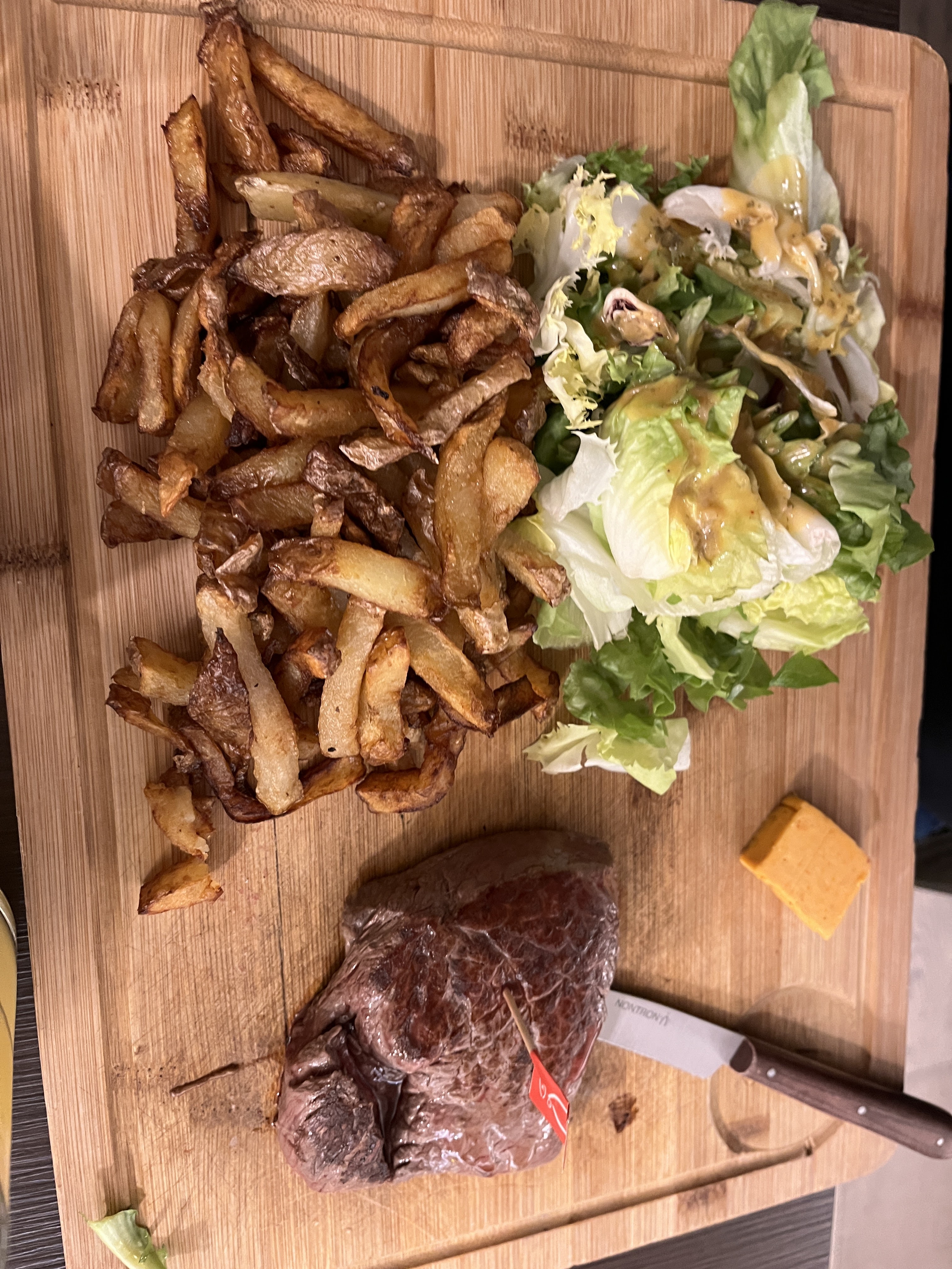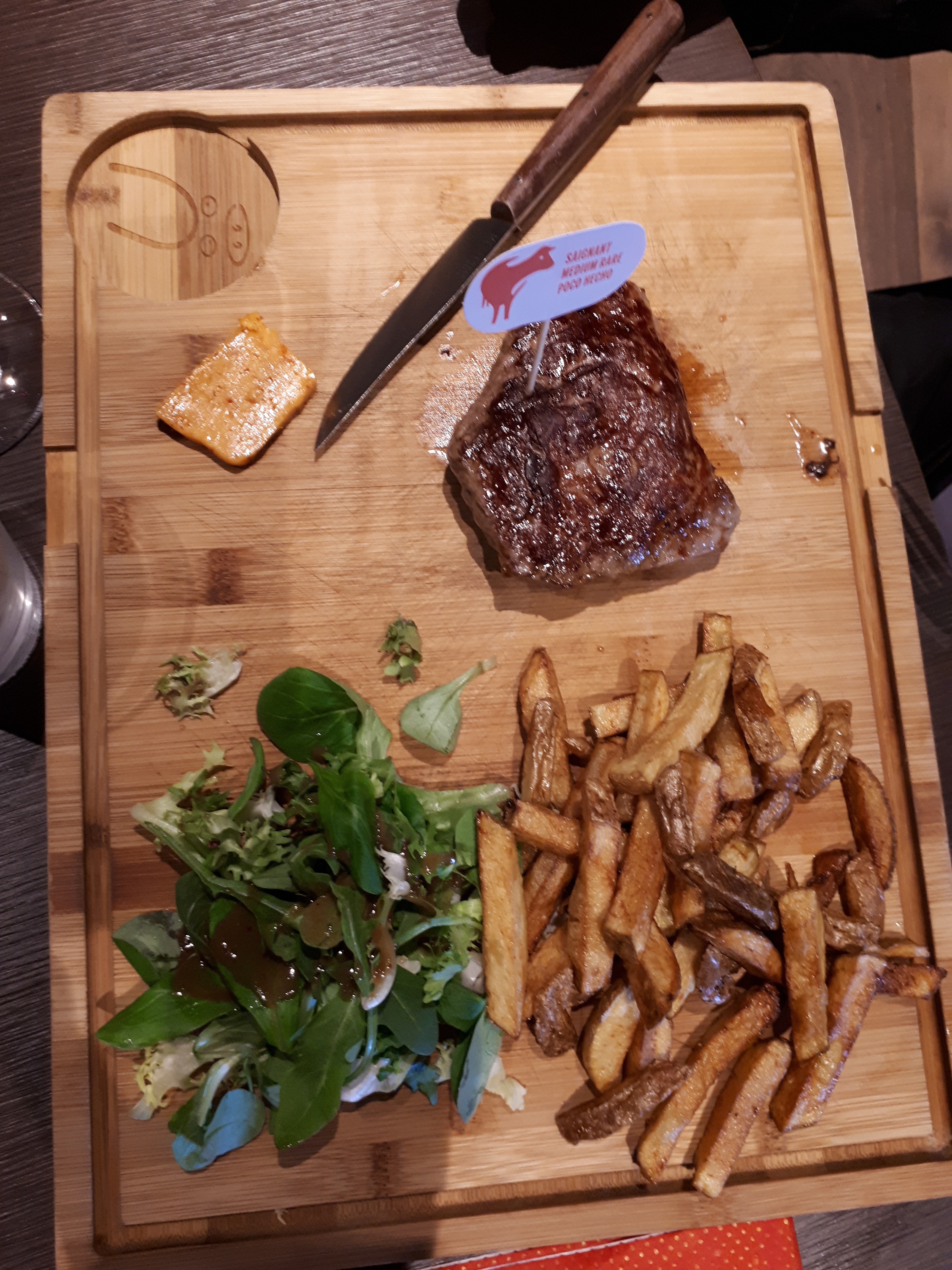 Franchement pour 15 euros j'ai mangé une très bonne entrecôte ? Une bonne portion de frites et une belle salade verte. Accompagné d'une belle trouvaille un beurre au piment d'espelette.. Miam... Un couteau qui coupe comme un rasoir !! C'est rare dans les restos... Beaucoup de chaînes équivalentes peuvent en prendre de la grainé. Bravo