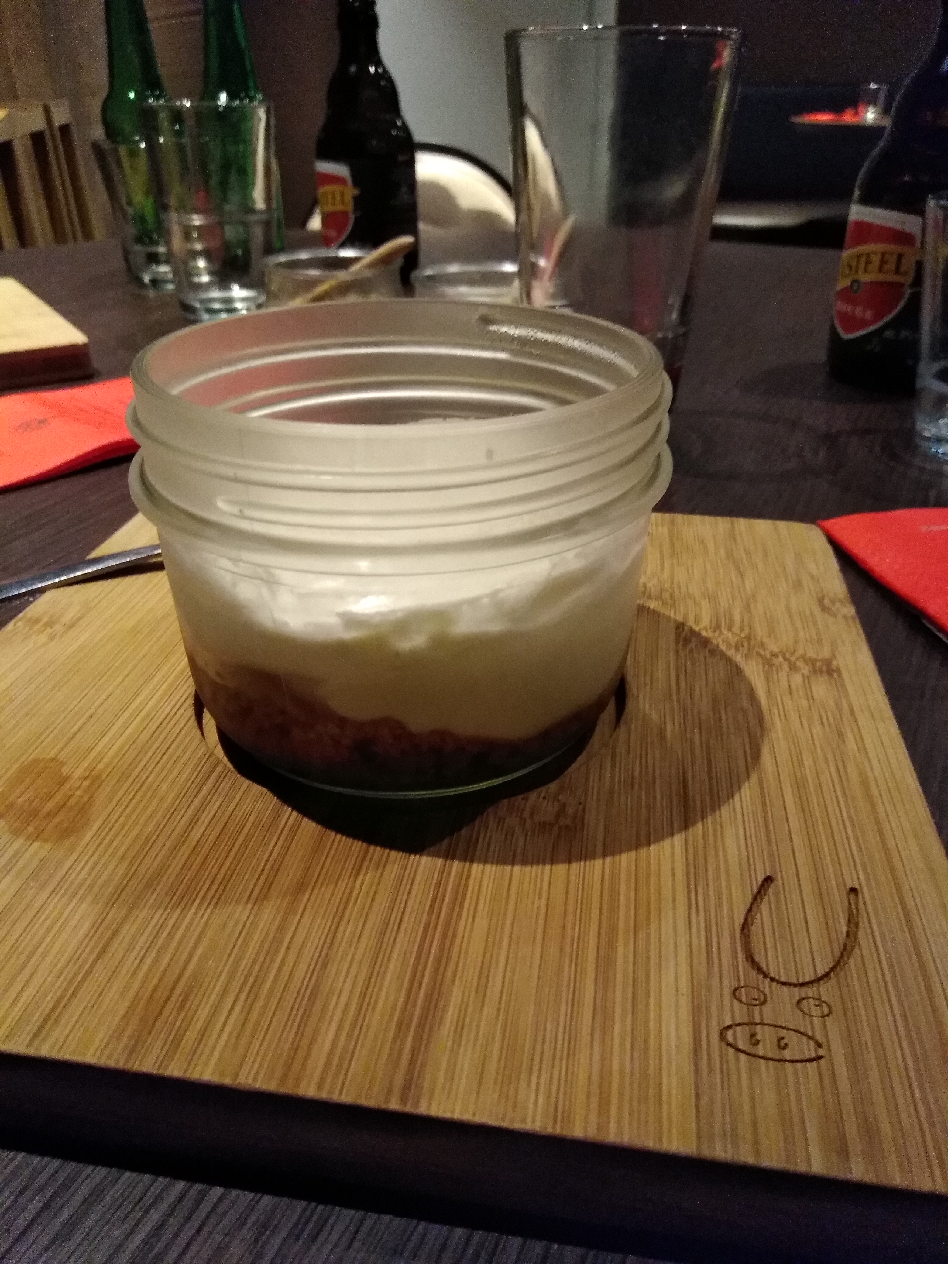 Pas terrible du tout un demi cocktail dans un grand verre c est moyen et même pas un bolt de cacahouète 1/3 d'une grande entre côte qu'on paie quand même 20 euros mis à la poubelle et une mousse au chocolat maison un peut fade... Heureusement qu'il y a un bon accueil