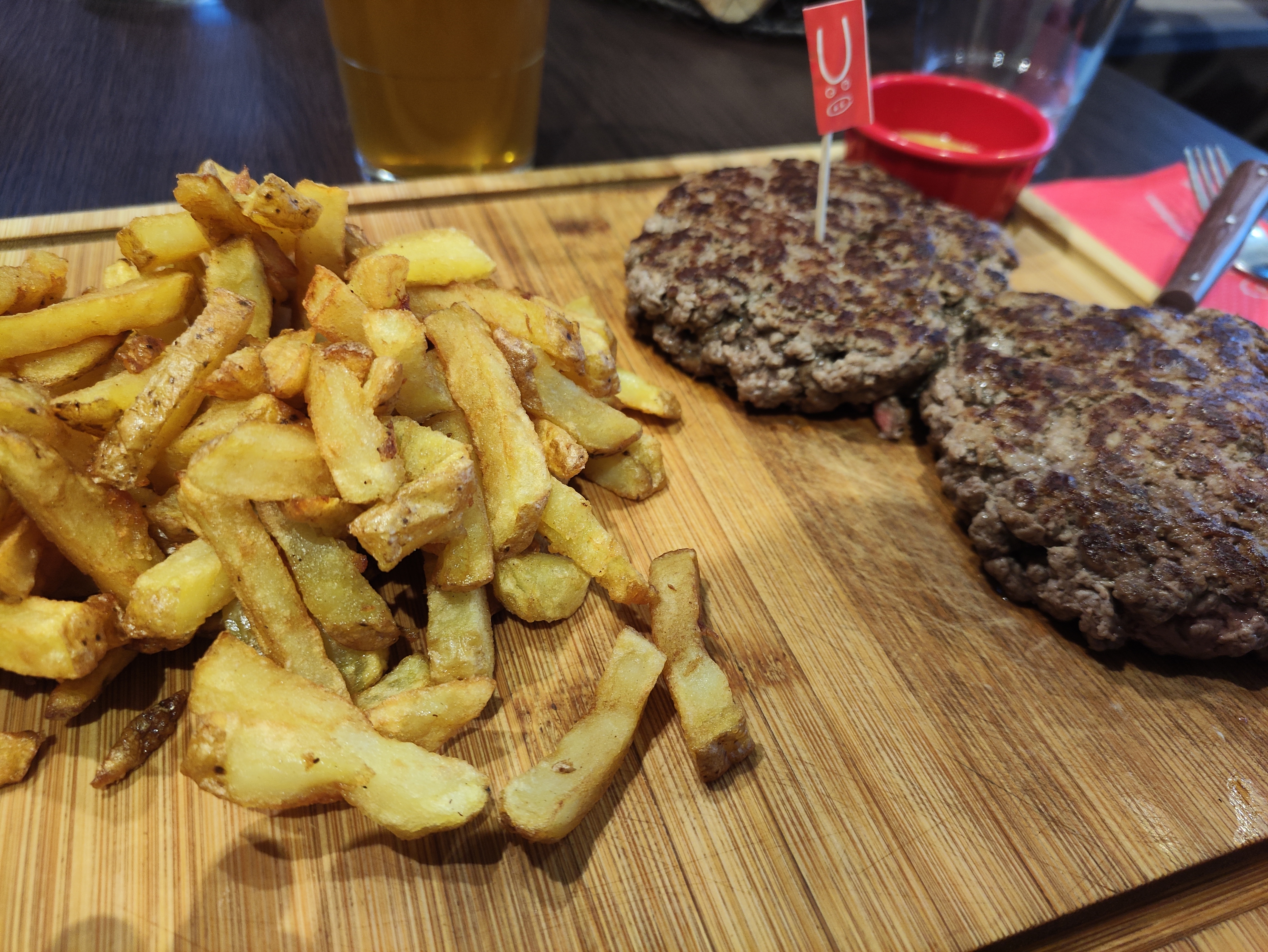 Les steacks ne sont peut-être pas super bon, mais les frites et la mousse au chocolat oui. Par contre mauvaise digestion quand nous nous sommes aperçus que nous nous étions bien faits arnaquer. On nous a proposé une formule soit disant avantageuse avec plat dessert boisson.. au final notre steack haché, notre verre 25cl et le dessert étaient moins chers sans la formule. C'est pas très honnête, nous n'y retournerons pas !