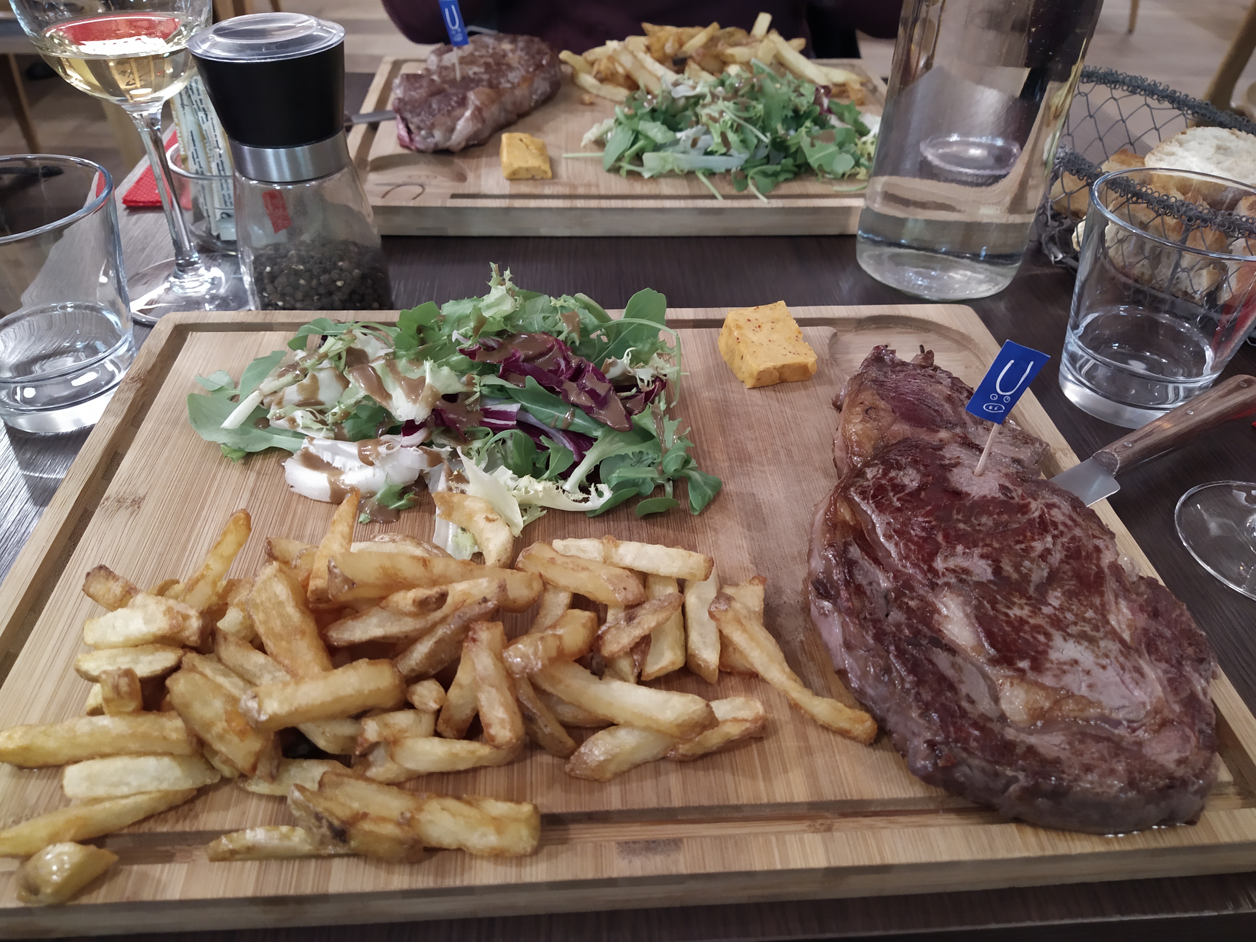 Franchement pas top. Je n'accroche vraiment pas au fait de payer avant dans ce style de resto, je me suis sentie un peu pressée par le fait que d'autres clients attendaient derrière, pas trop le temps de choisir. Ensuite l'entrecôte était pleine de nerfs, pas mauvaise mais pour le prix... Y'a bien mieux ailleurs. Les frites ou plutôt les bouts de frites très séches( on aurait dit les petits bouts durs qui restent au fond des sachets surgelés, même si elles sont maison) Salade qui faisait très industrielle La mousse au chocolat est copieuse et très bonne ! Service sympa. Je n'y retournerais malheureusement pas.