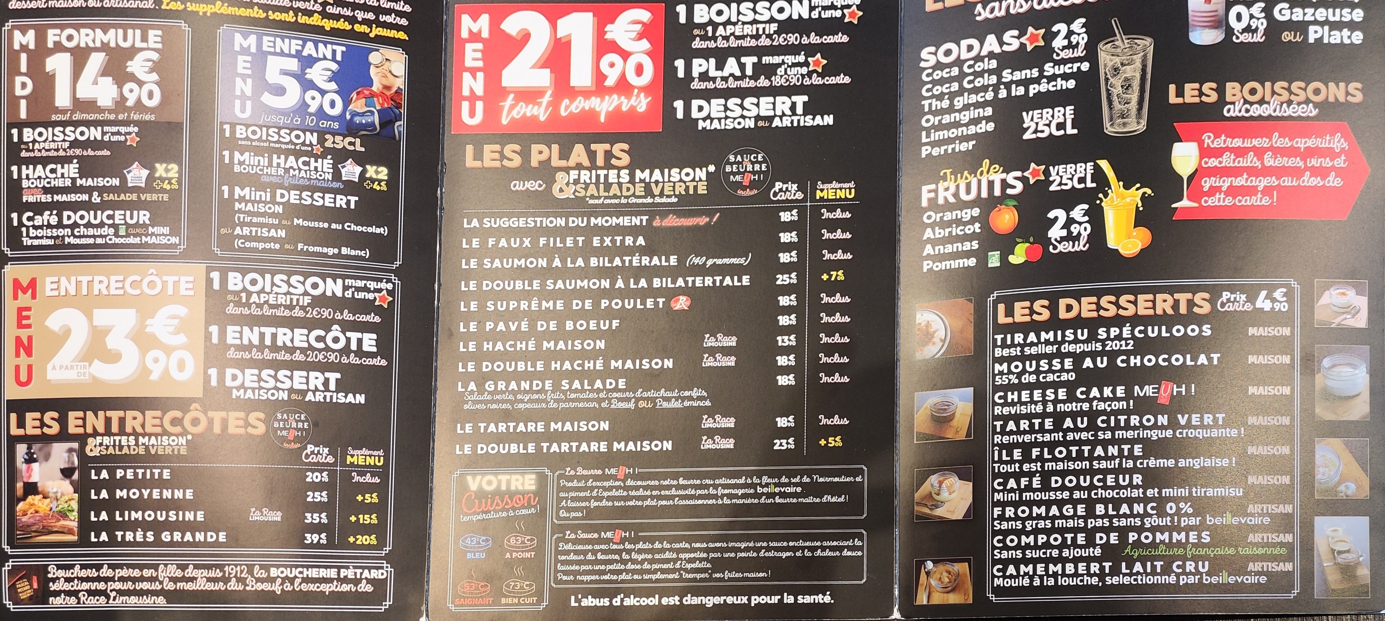Du boeuf excellent et abordable, un service au top ! Je recommande ! Il y en a pour tous les goûts