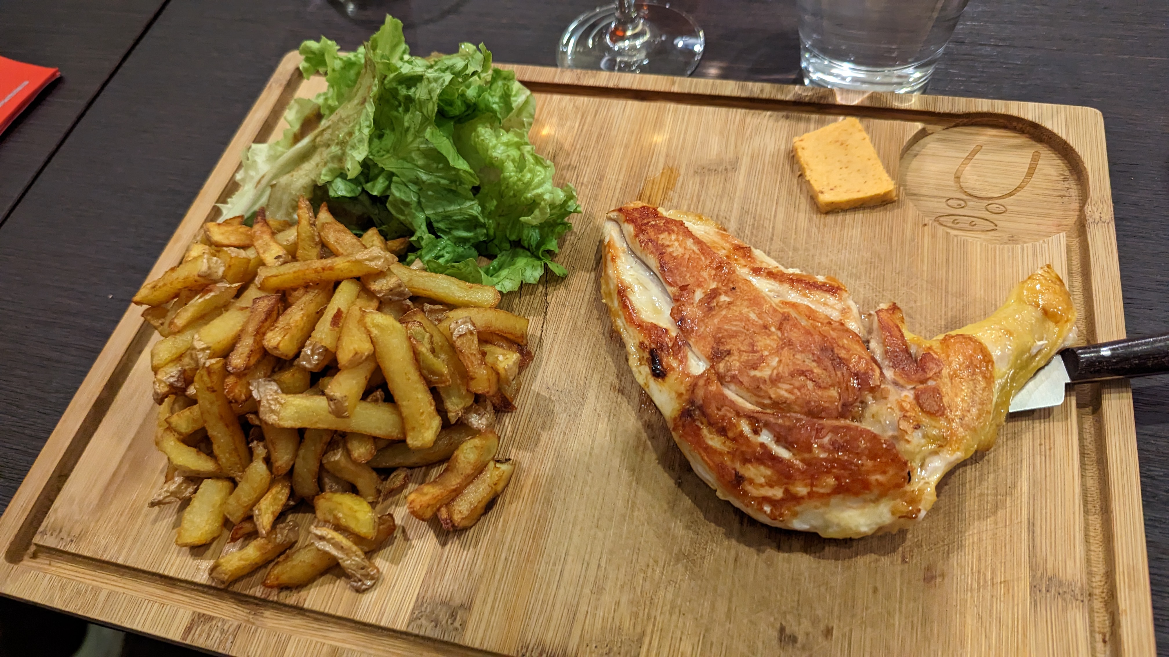 Commande une grande planche pour 17,90€ Par Uber eat, un petit mot à l’intérieur de la boîte « désolé rupture de paté ». La grande planche se compose d’un saucisson, d’une boîte de pâté et d’une tapenade. Paté remplacé par une barquette de frites. Mouais un peu léger… ça fait cher le saucisson. On a vu, on est déçu, on n’y reviendra plus…