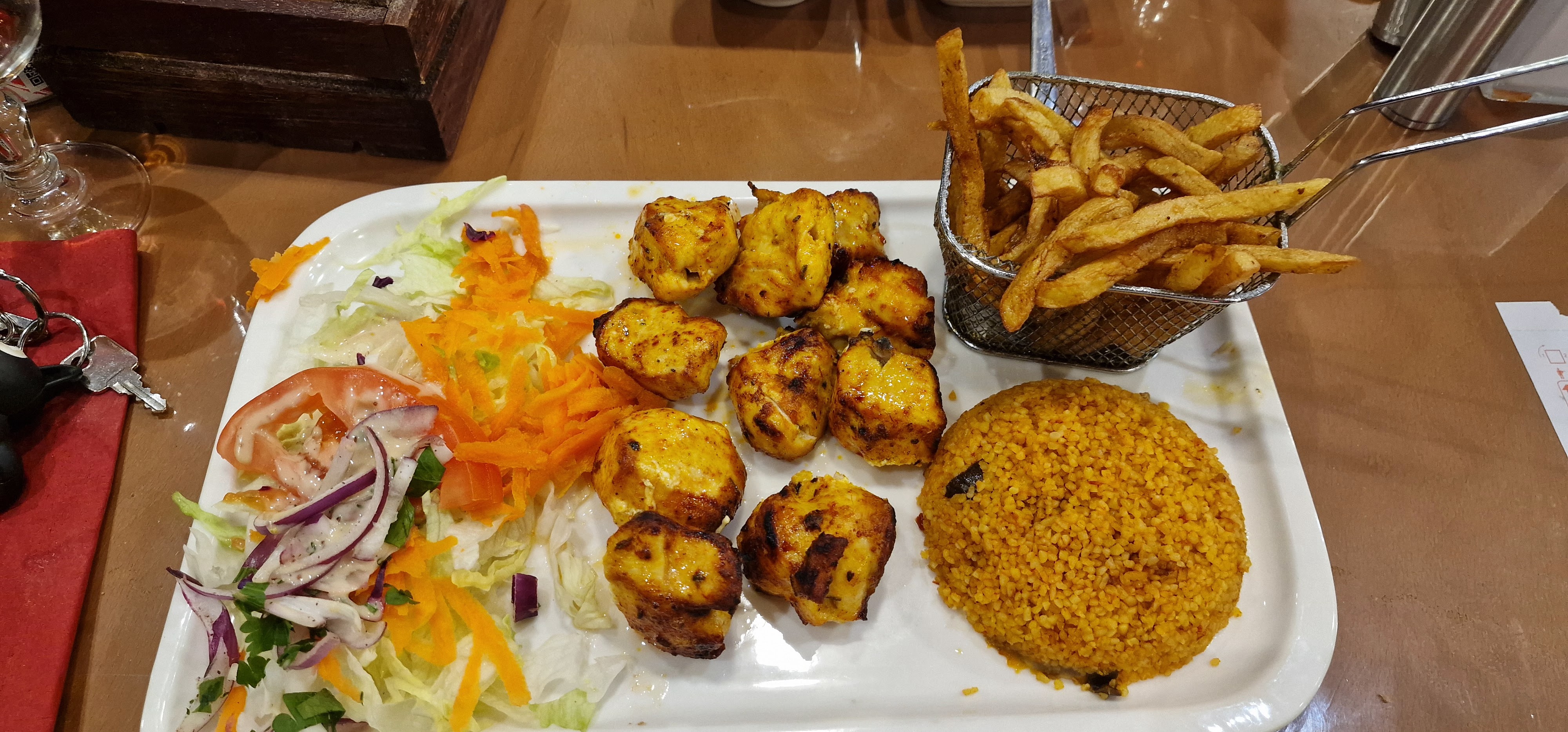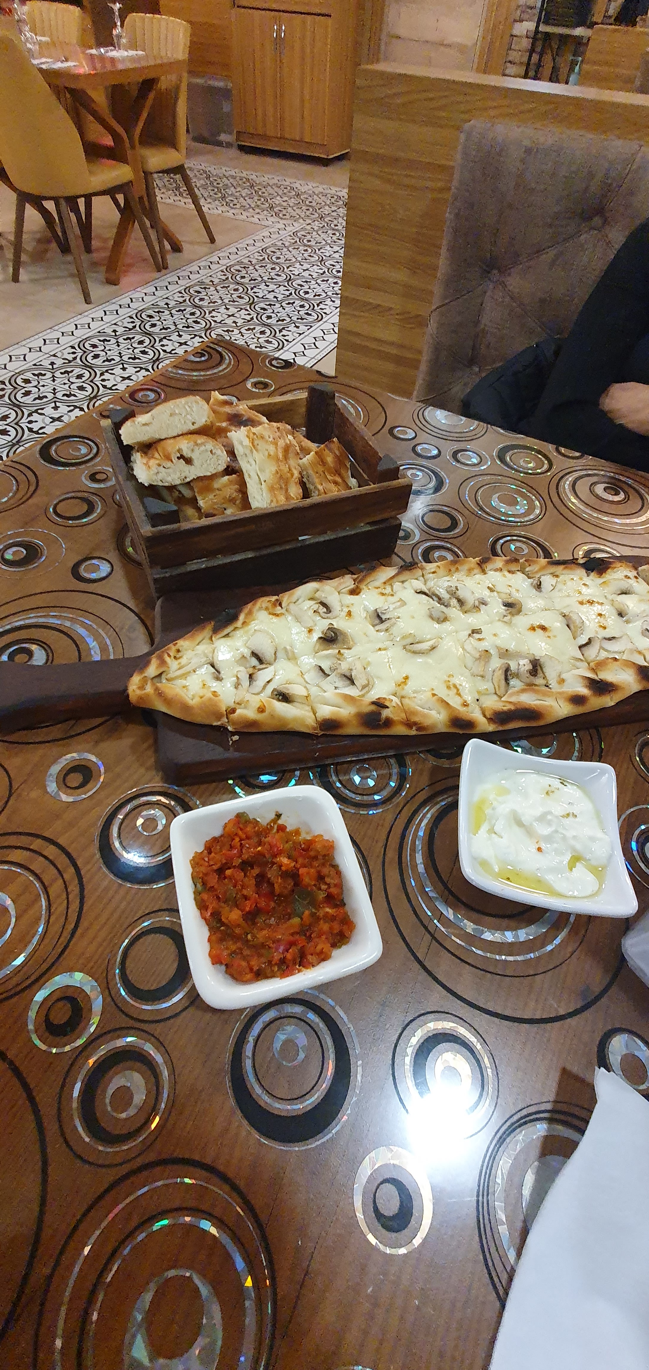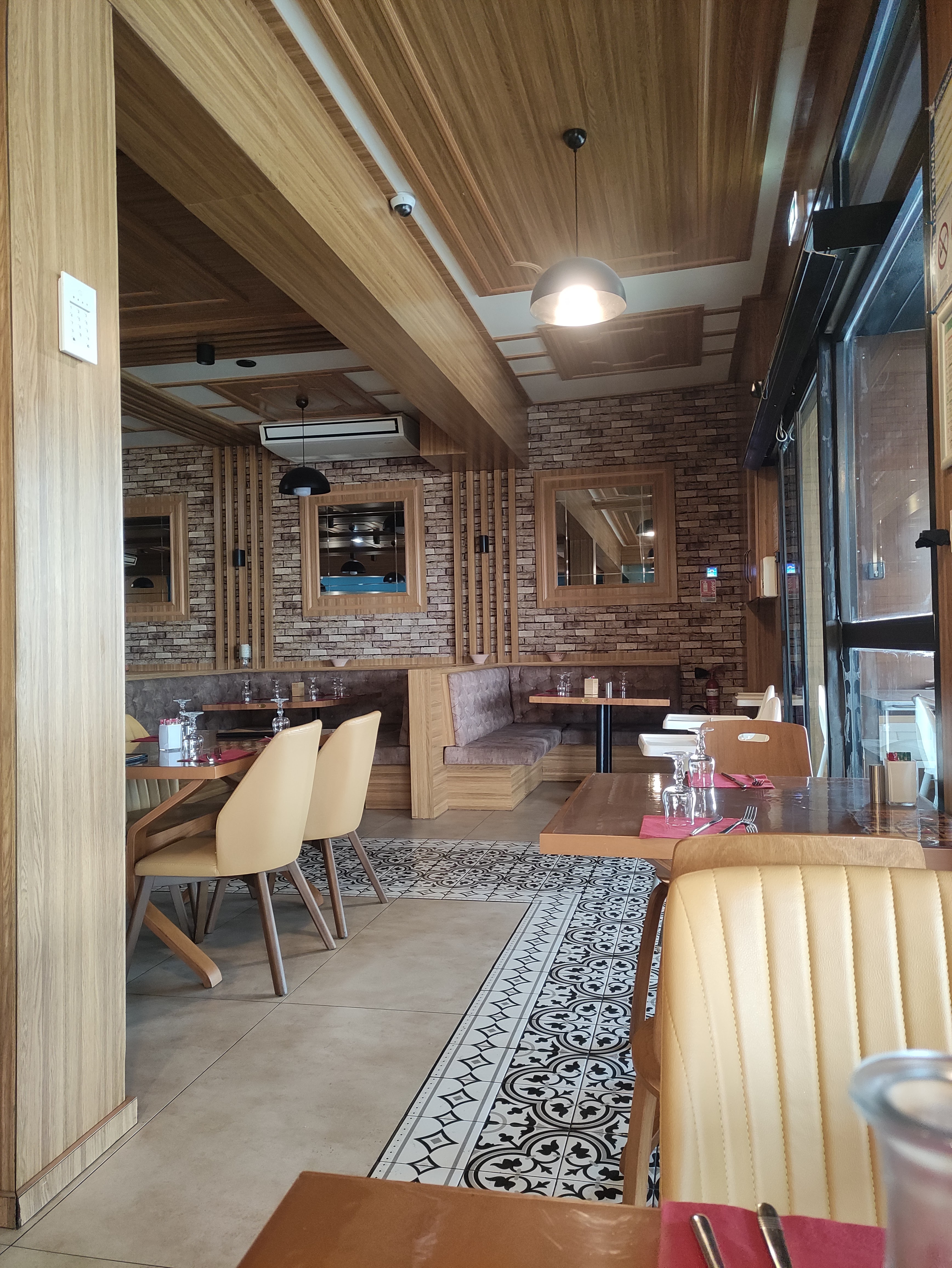 La décoration reste jolie sauf l’agencement des tables on se croirait manger à la cantine. Penser à bien donner votre commande en 1 fois si vous souhaitez prendre un dessert par la suite je suis pas sûr que la serveuse ai le temps de venir prendre la commande. La carte reste assez complet mais le goût de la viande était fade il manquer des épices... La salade bergère avait un goût différent elle ne devait pas être fraîche Le thé était inbuvable Le pain pide était excellent 👌🏻