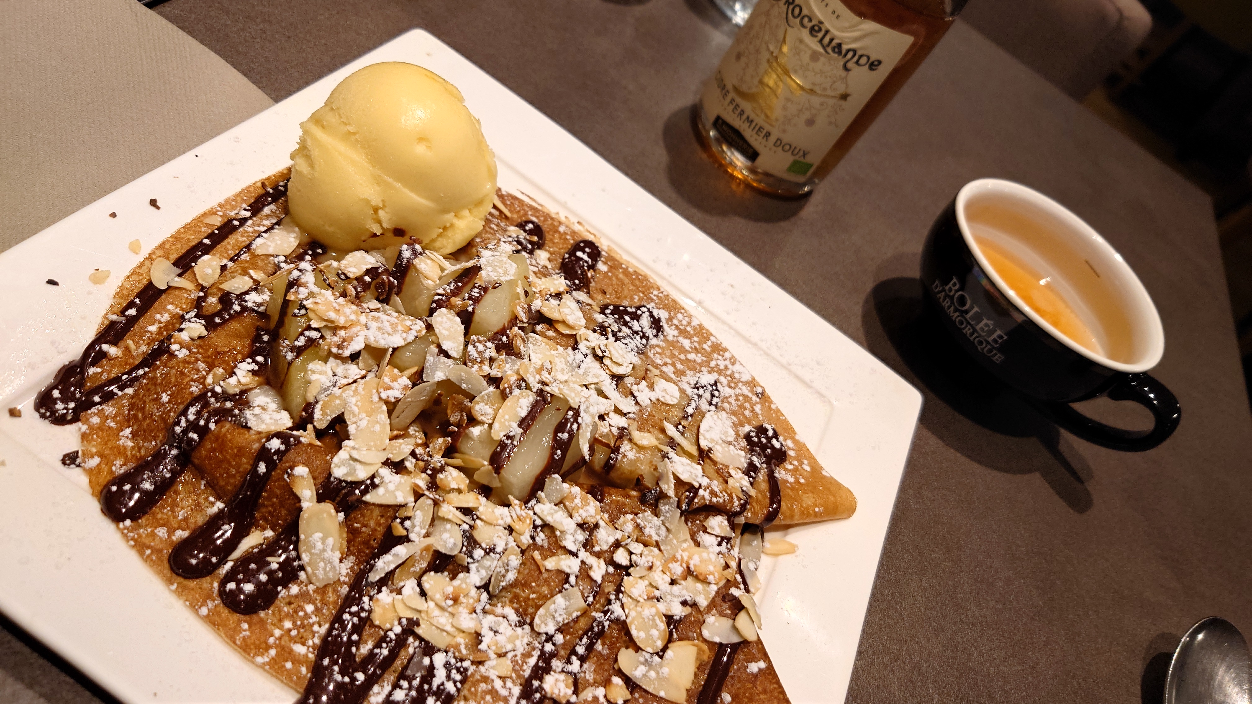 On se croirait en Bretagne ! ^^ Des crêpes très bonnes, un gros + pour la chantilly parfumée vanille ! Et une très bonne découverte du cidre doux de Brocéliande