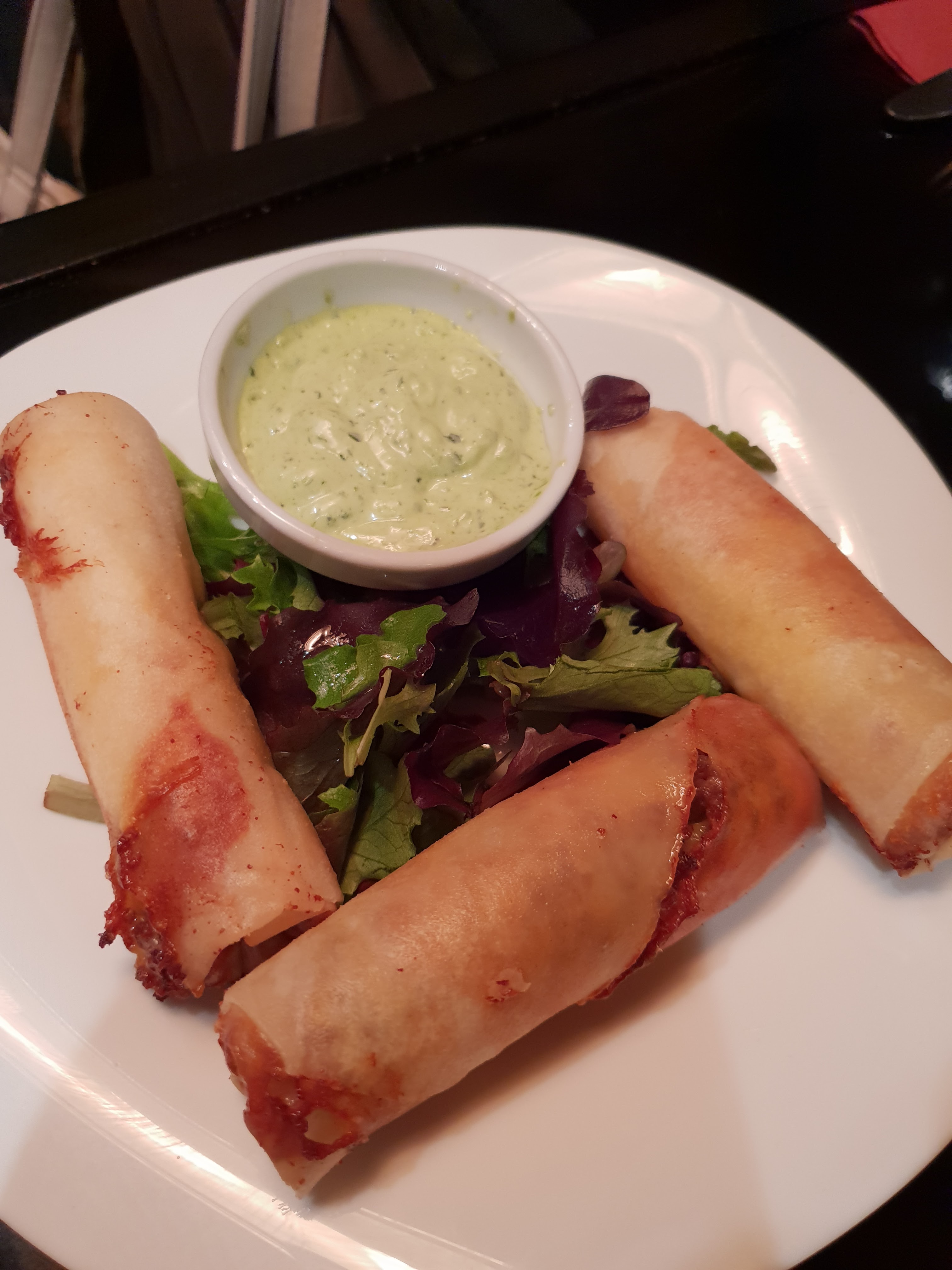 C'est un délice, les plats sont gourmands, goûteux, le personnel est juste au top, souriants et aimable. Tout ce qu'on attend d'un excellent restaurant. Mes respects au chef et au personnel. Je recommande vivement.