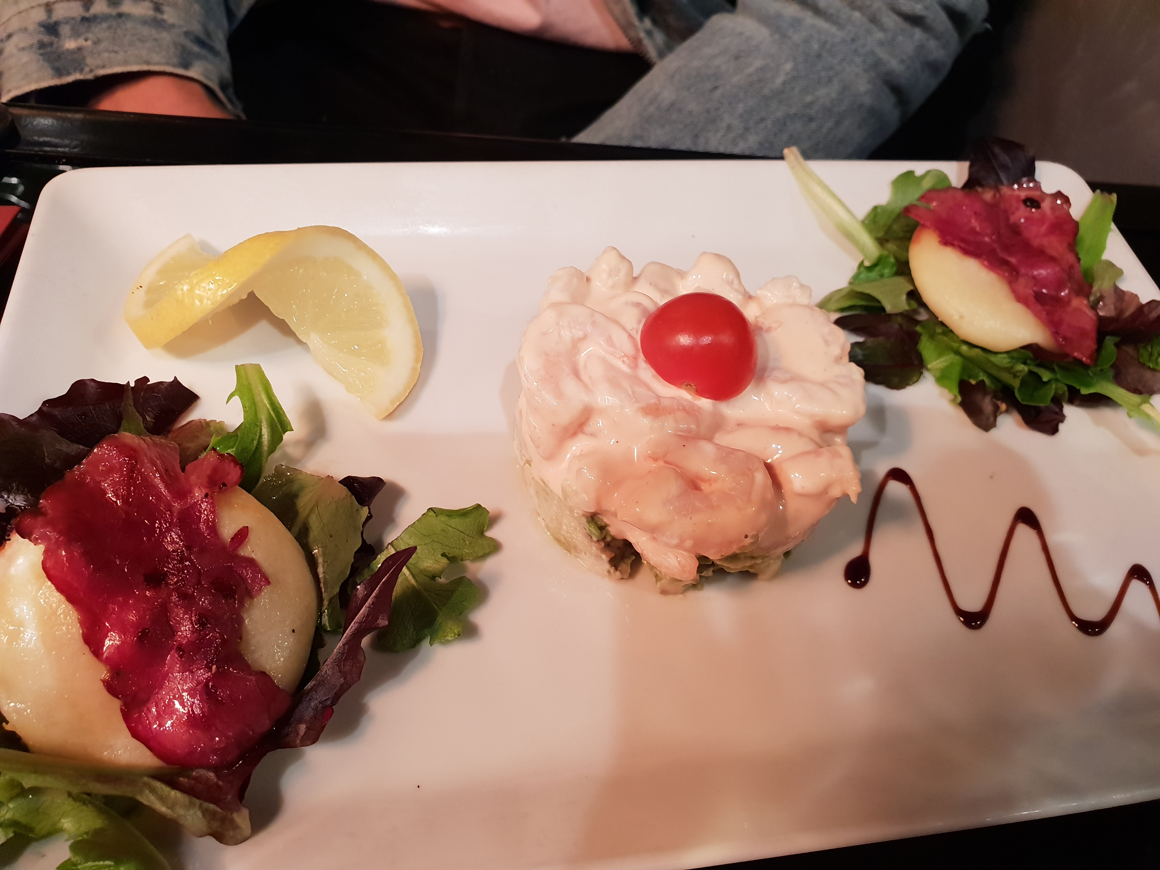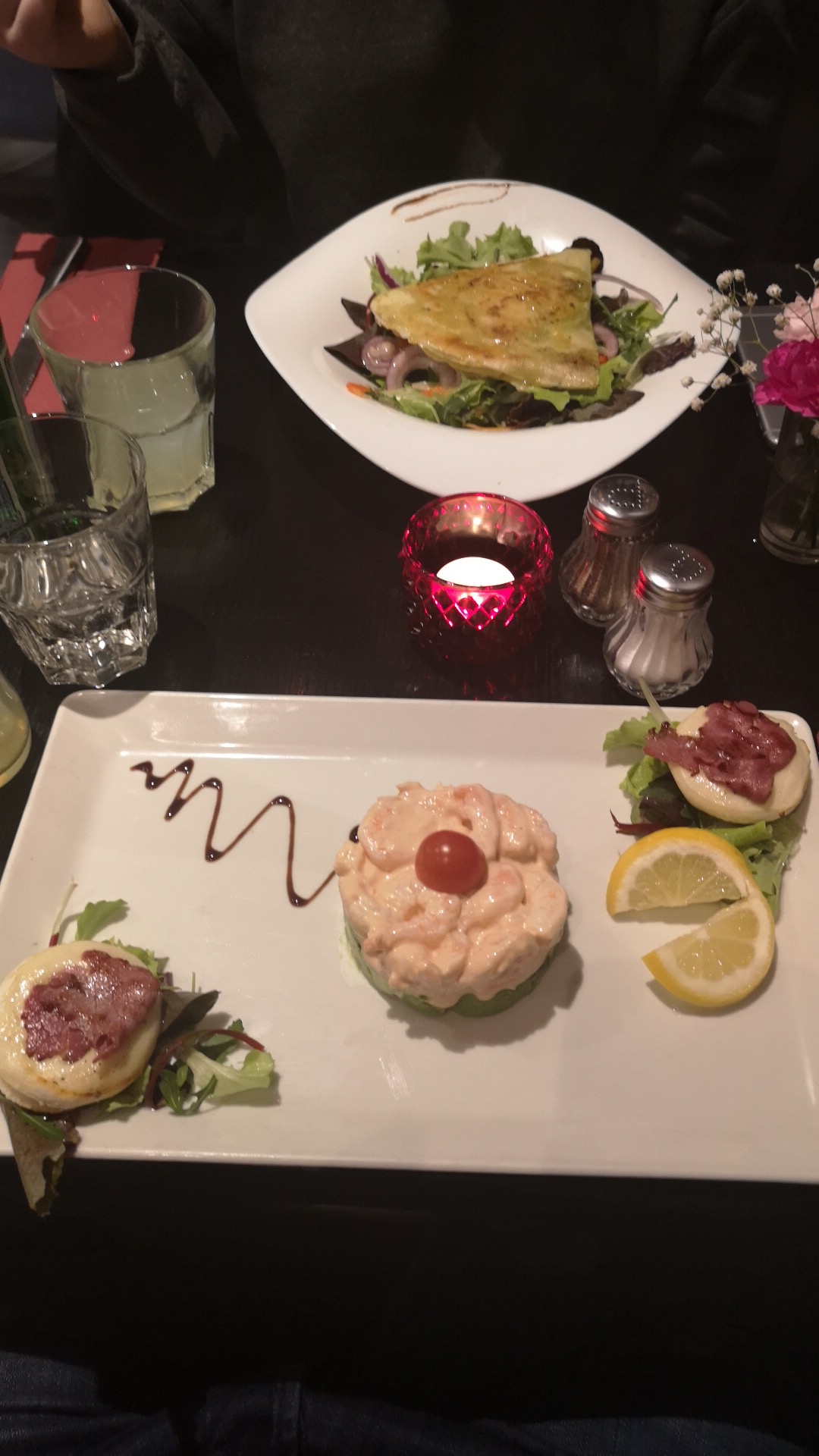 Accueil par le patron 👍. J'avais pris la formule plat dessert mais je n'ai pu dégusté que le plat. Mes amis aussi n'ont mangé que l'entrée et le plat. Rapport qualité prix très bien. C'était le premier jour d'un des serveurs cela se voyait donc les petites erreurs de service nous n'y avons pas preté attention et il faut un début à tout. La décoration est un peu trop sombre mais ne pas s'y fier pour les plats car ils sont bons et bien garnis.