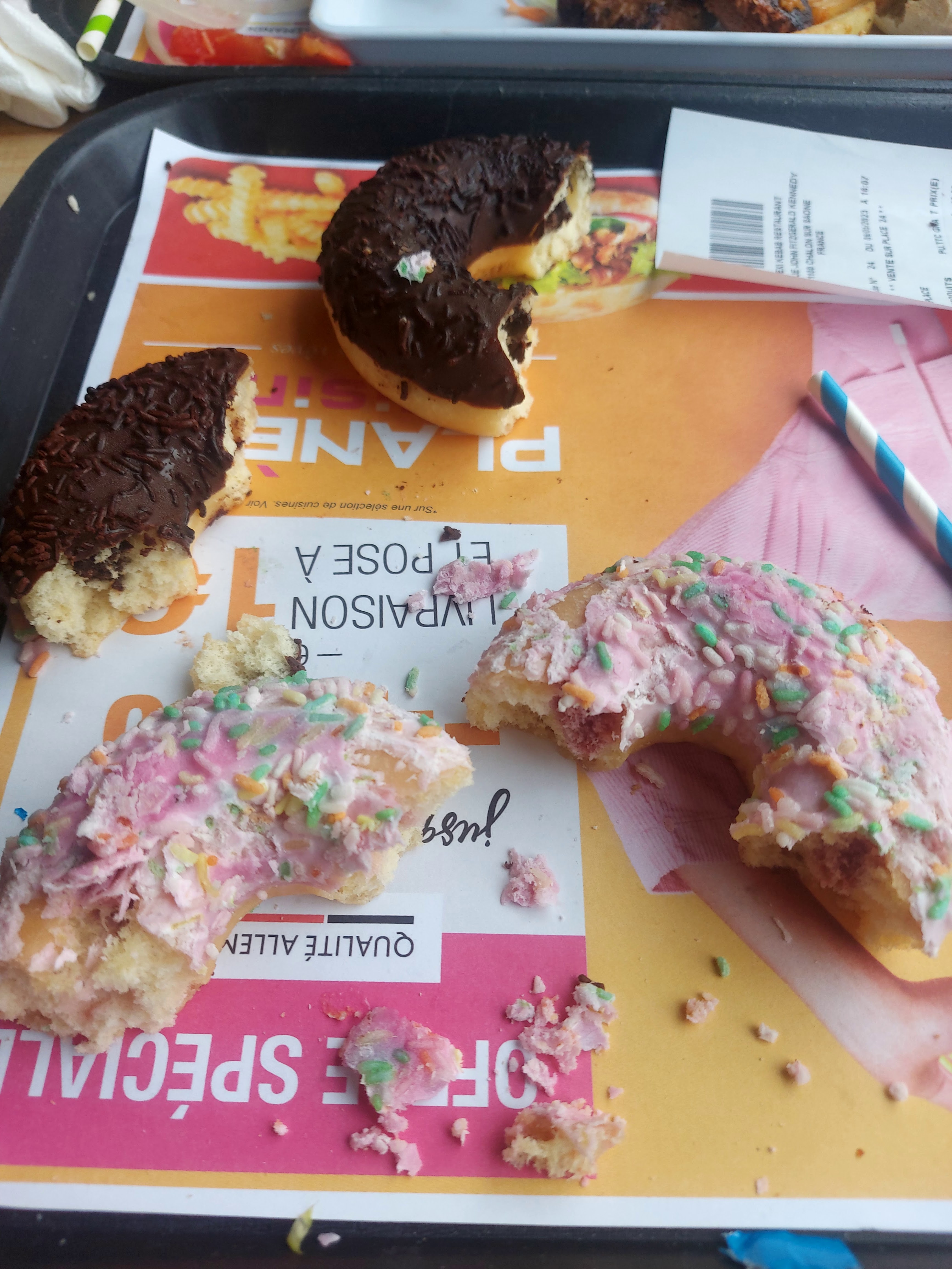 Je n'ai pas l'habitude de laisser de commentaires mais là c'est nécessaire. Commençons avec le seul bon point :Burger et frites corrects bien que trop chers pour ce que c'est. Ensuite les points négatifs : les donuts ont très mauvais gouts et sont affreux en texture et en visuel... Encore plus négatifs : service déplorable alors qu'on est seuls dans le restaurant et que l'employée a tout son temps. Pour conclure, je conseille plutôt d'aller dans un petit kebab avec un vrai chef qui sera bien plus à l'écoute et qualitatif.
