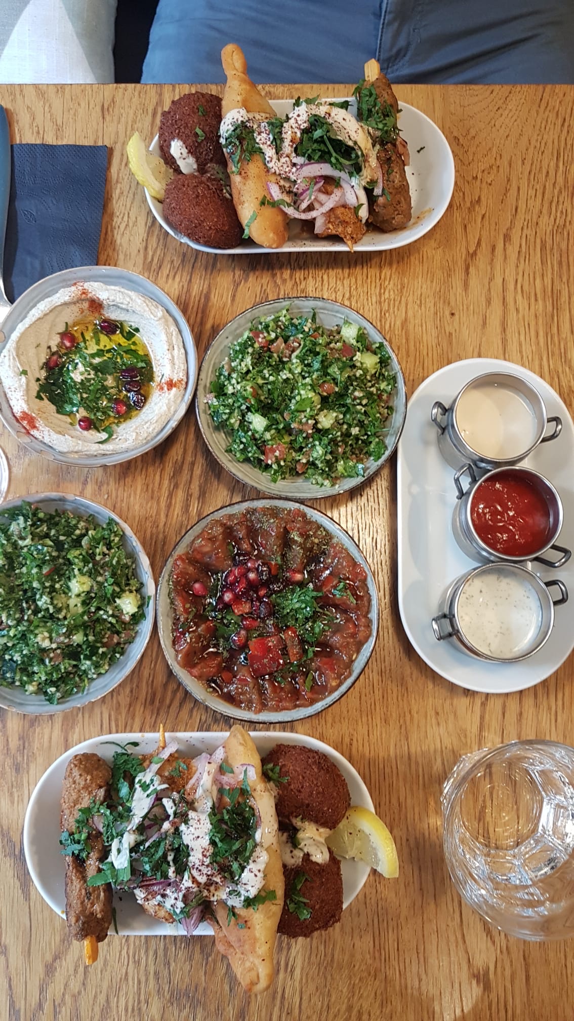 J’ai passé un agréable moment dans ce restaurant. Le personnel était plutôt sympathique mais on sentait que l’affluence les stressait quelque peu. Nous avons pris un assortiment de mezze afin de découvrir toutes les spécialités. La serveuse nous a expliqué ce que contenait chacun des mezze. Nous avons également pris du poulet frit et de la viande hachée. Tout était vraiment très très bon ! Nous avons été installés dans la salle du haut, c’est un espace super cosy ! Je recommande ce restaurant !