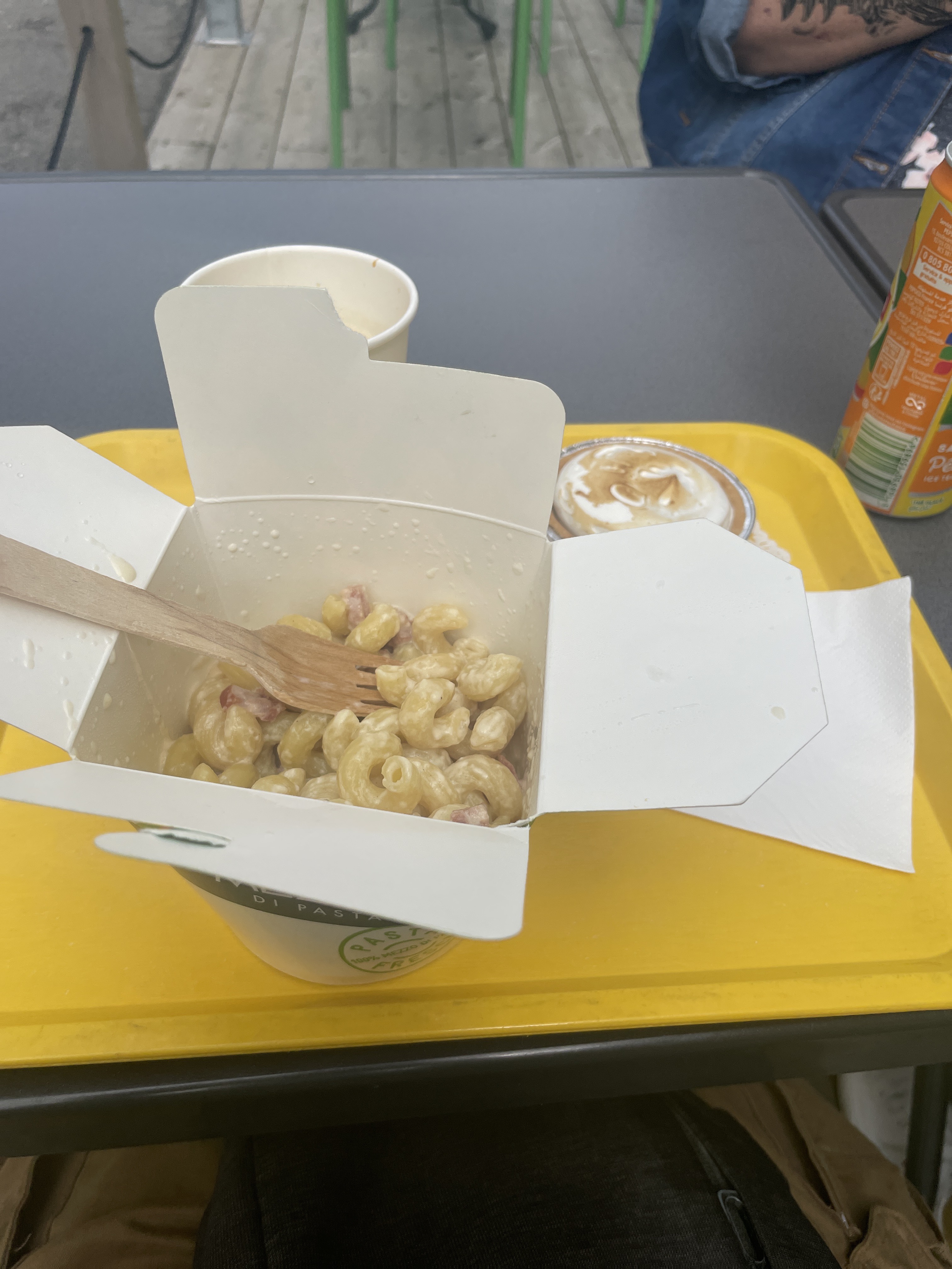 Accueil plutôt froid concernant la dame et service assez lent, le monsieur en revanche était très gentil. Pâtes pré-cuites, fromage pas fondu à l'intérieur et sauces fades. Box normale plutôt petite. Ne vaut clairement pas son prix (9€ box simple + petite boisson). J'ai personnellement mangé des pasta boxes meilleures et moins chères au supermarché. Je ne recommande pas.