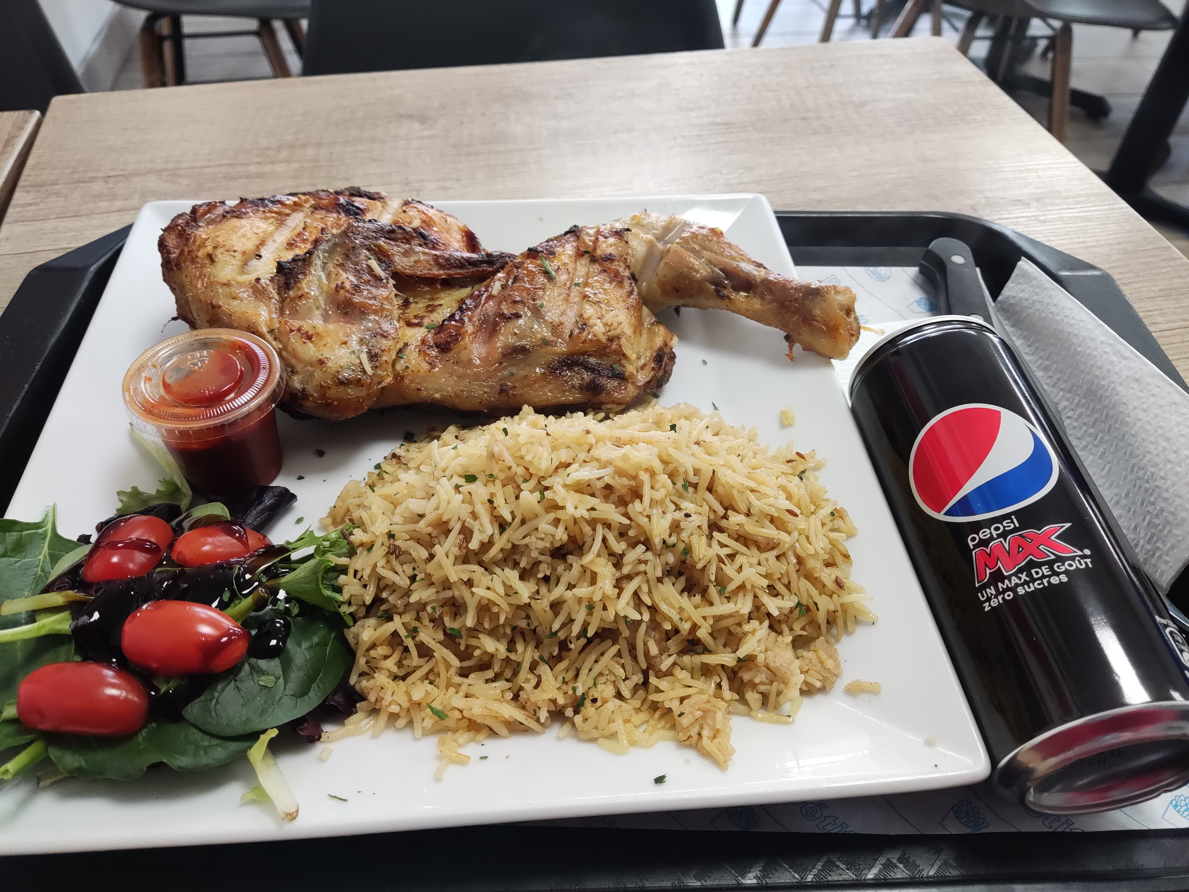 Poulet croustillant, frites croustillantes le tout servi chaud et LA boisson bien fraîche. Tout simplement bon et Halal. Gracias.