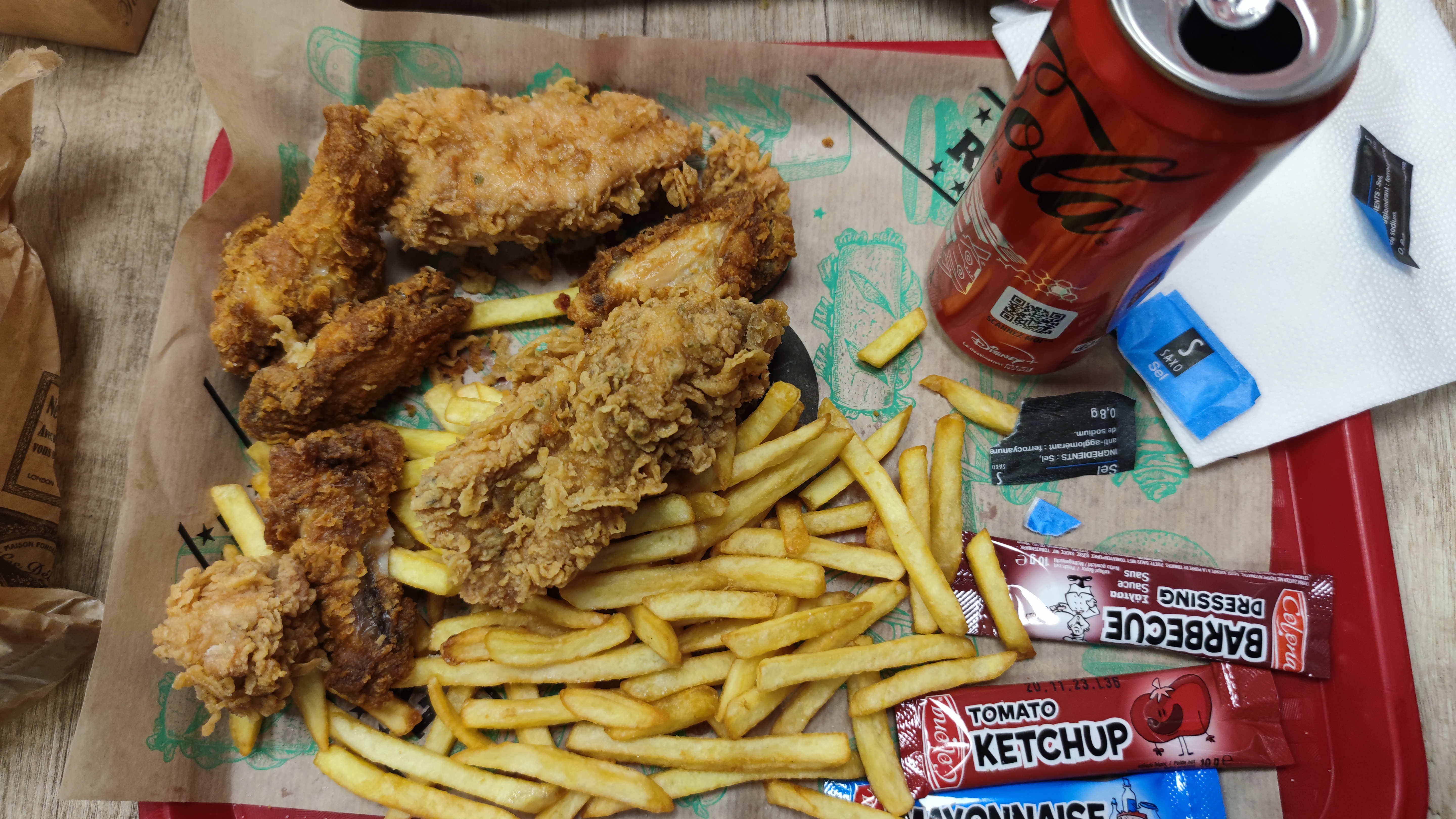 Recette fidèle à elle même , tenders généreux et goutus , pièces à tomber par terre ! Les wings étaient légèrement trop salés à mon goût .. Équipe accueillante et conciliante , j'aurais mis 4,5 étoiles si c'était possible