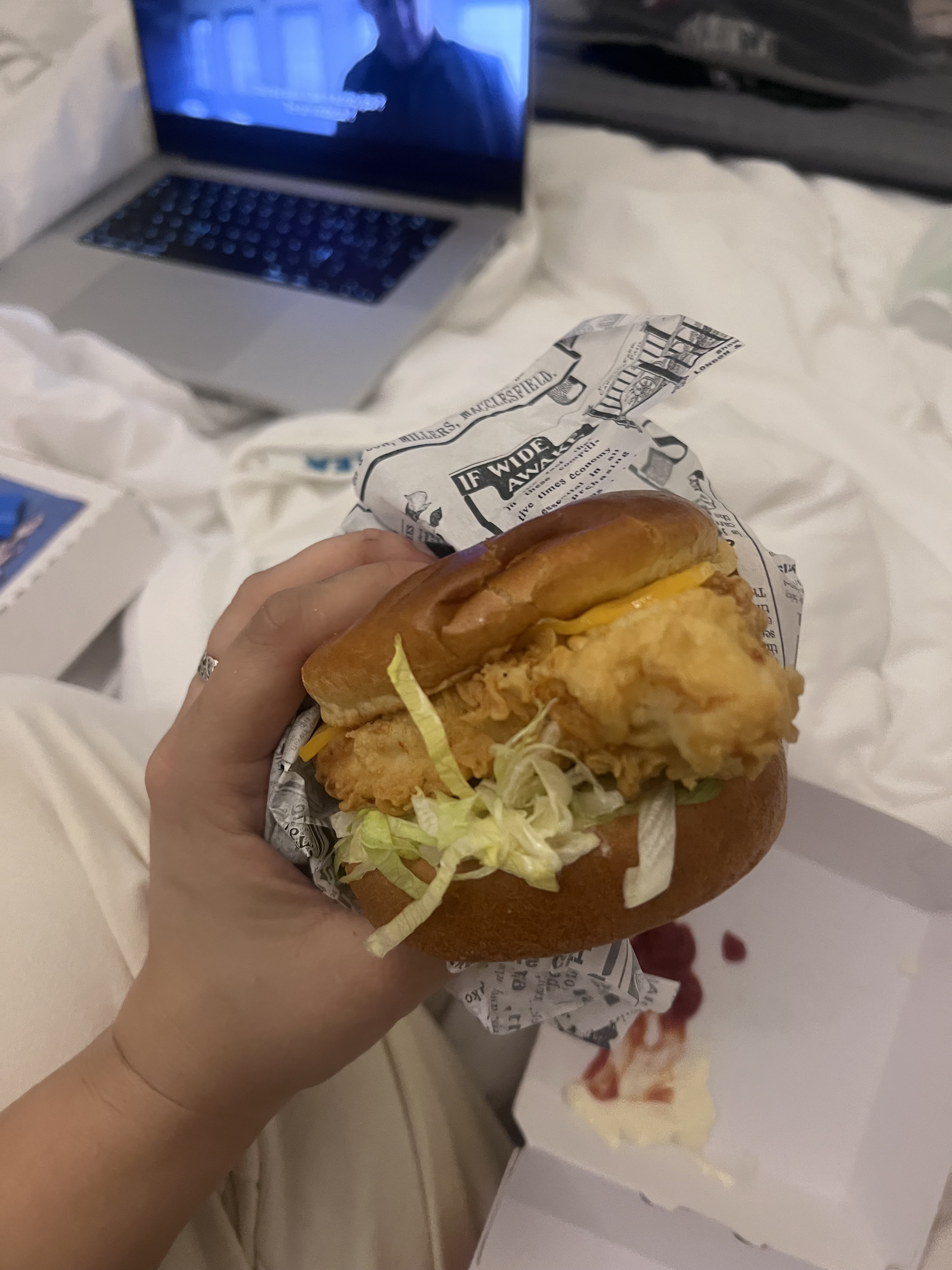 J’ai dégusté ce soir des tenders de poulet accompagnés de frites, quelques défaut dans le menu où je pensais avoir 32 tenders de poulet et au final 20 seulement, c’était plutôt bien gras...les frites n’étaient pas top non plus mais c’était pas mauvais dommage qu’il n’y ait pas beaucoup de choix de sauces...