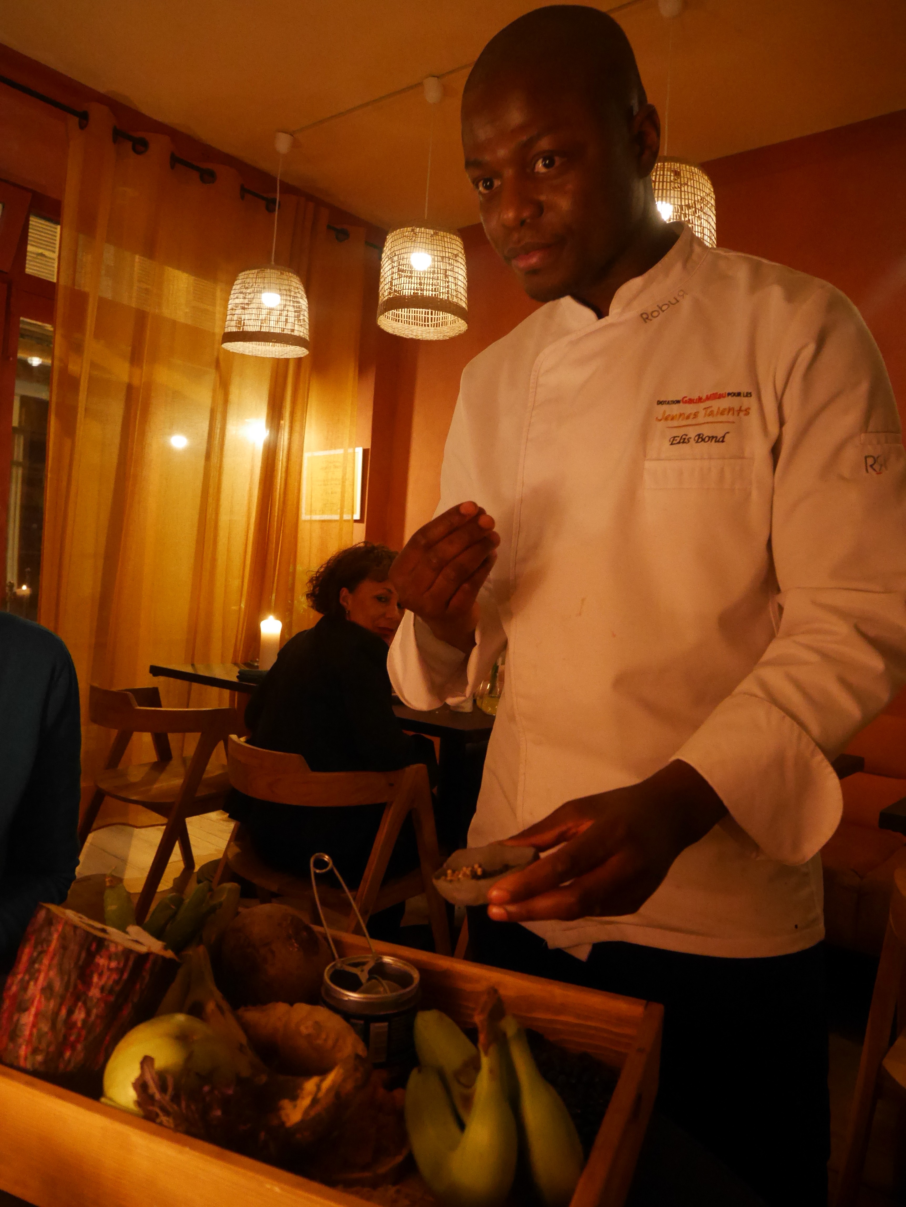 Tout nouveau restaurant proposant une cuisine afro antillaise tenu par un jeune couple. Le chef, Elis Bond d origine haïtienne révisite des plats traditionnels pour nous faire découvrir de nouvelles saveurs. Ce soir la nous avons eu le droit à une découverte de la cuisine haïtienne tout en subtilité. En salle c est vanessa d origine beninoise qui nous accueille tout en gentillesse et qui nous propose aussi une belle sélection de vins du monde. Une adresse à découvrir. Petit plus à la fin du repas le chef vient présenter les ingrédients qu il a utilisé pour le repas et nous explique sa cuisine.