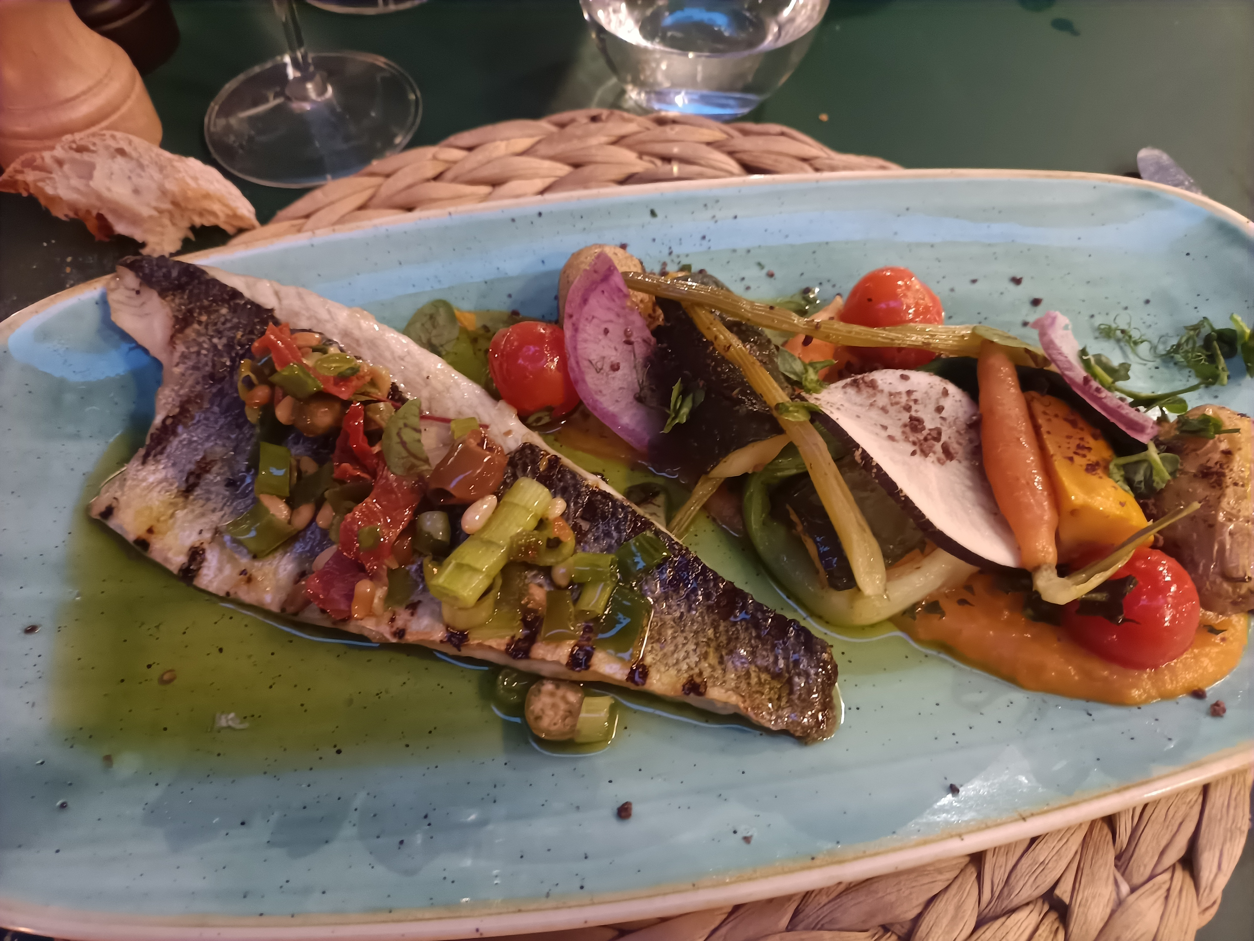 Le gérant est super sympa et vient sans hésiter voir les clients, et les serveurs sont très agréables également. On a droit à une petite terrine d’olives en attendant nos entrées (au lieu du pain habituel qu’on retrouve dans d’autres restos). Le Virgin Spritz était pas mal, et le choix à la carte est varié. Le foie gras fond dans la bouche et la bruschetta est savoureuse. 5/5