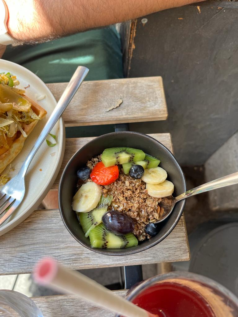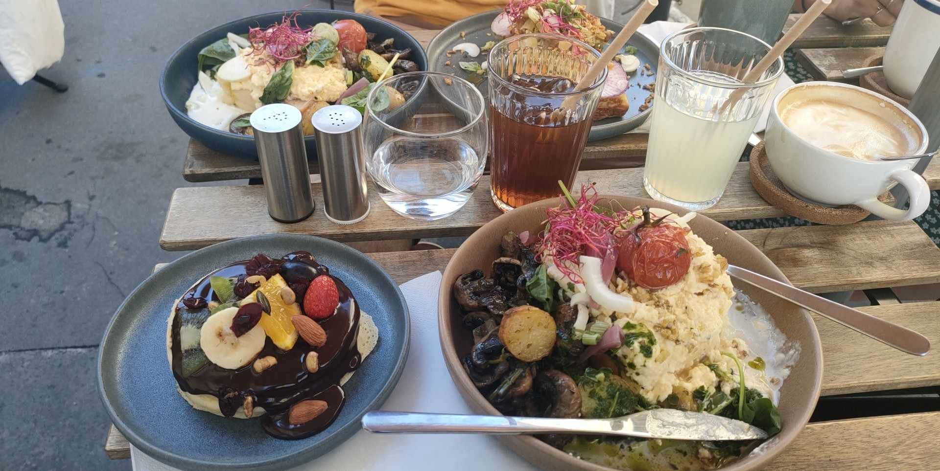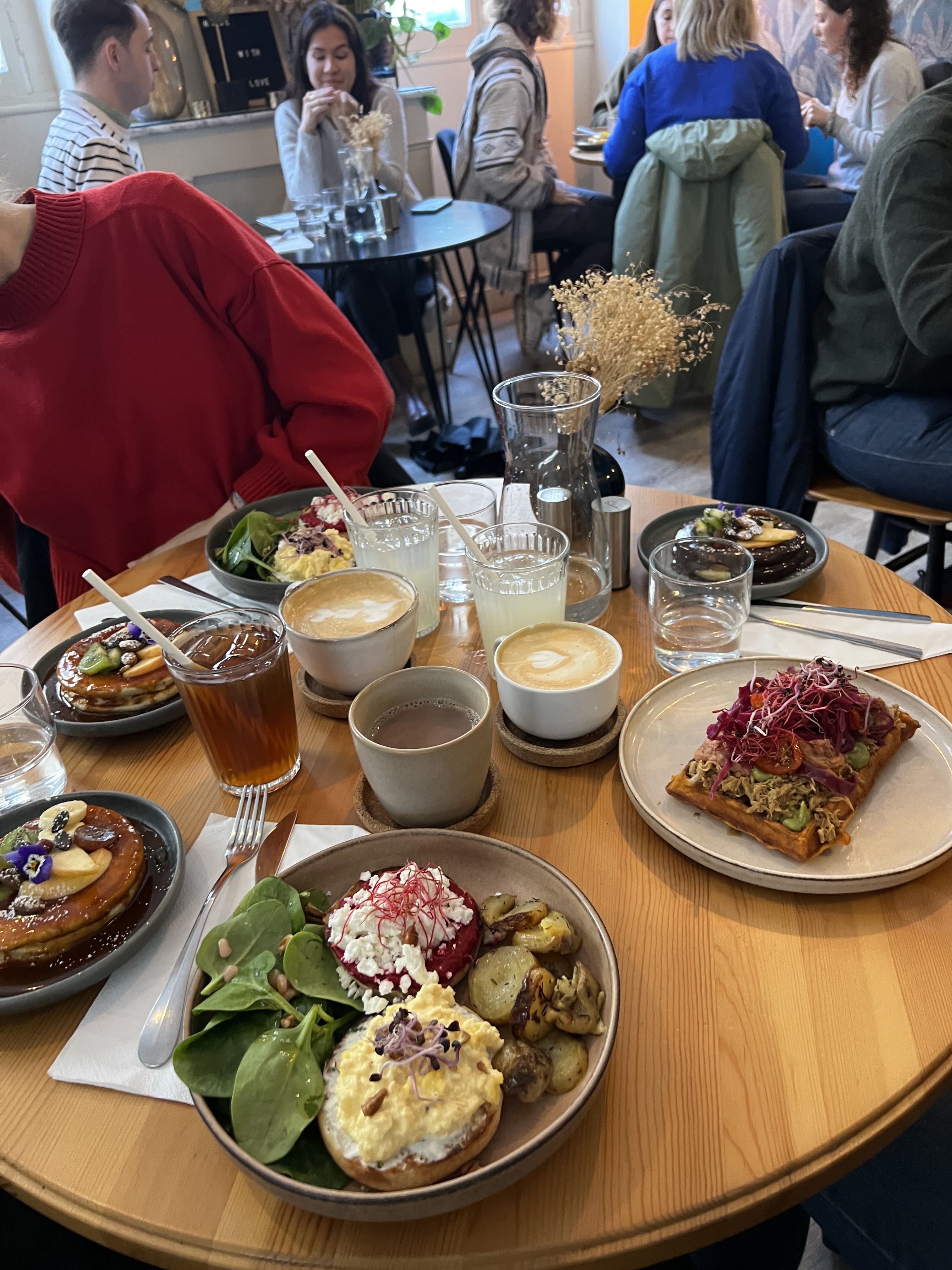Arrivé à 10h00 un dimanche nous souhaitons commander un plat type petit déjeuné… pas possible après 10h00, il faut prendre le brunch car nous avons dépassé de 2 min l’heure fatidique… assez décevant car nous souhaitions juste des œuf et du bacon, rien de sensationnels. Nous commandons un brunch vegan, pas extra, pancake très sec, dal de lentille et choux fleur froid. Je commande un double expresso qui a le look et le goût d’un café filtre, on me dit que c’est bien un double expresso, je le fais quand même renvoyer et on m’en ramène un finalement pas trop mal. Expérience assez décevante.