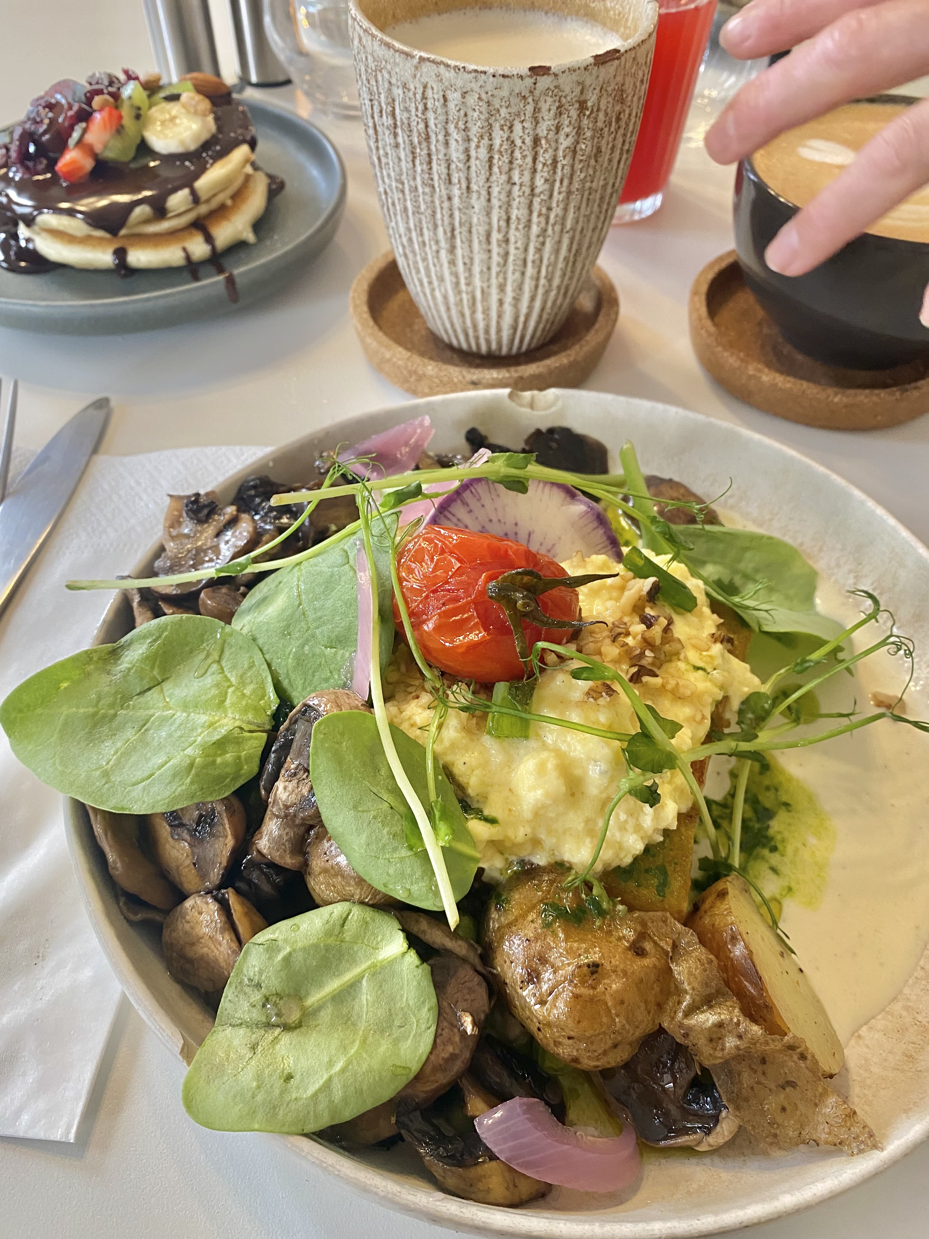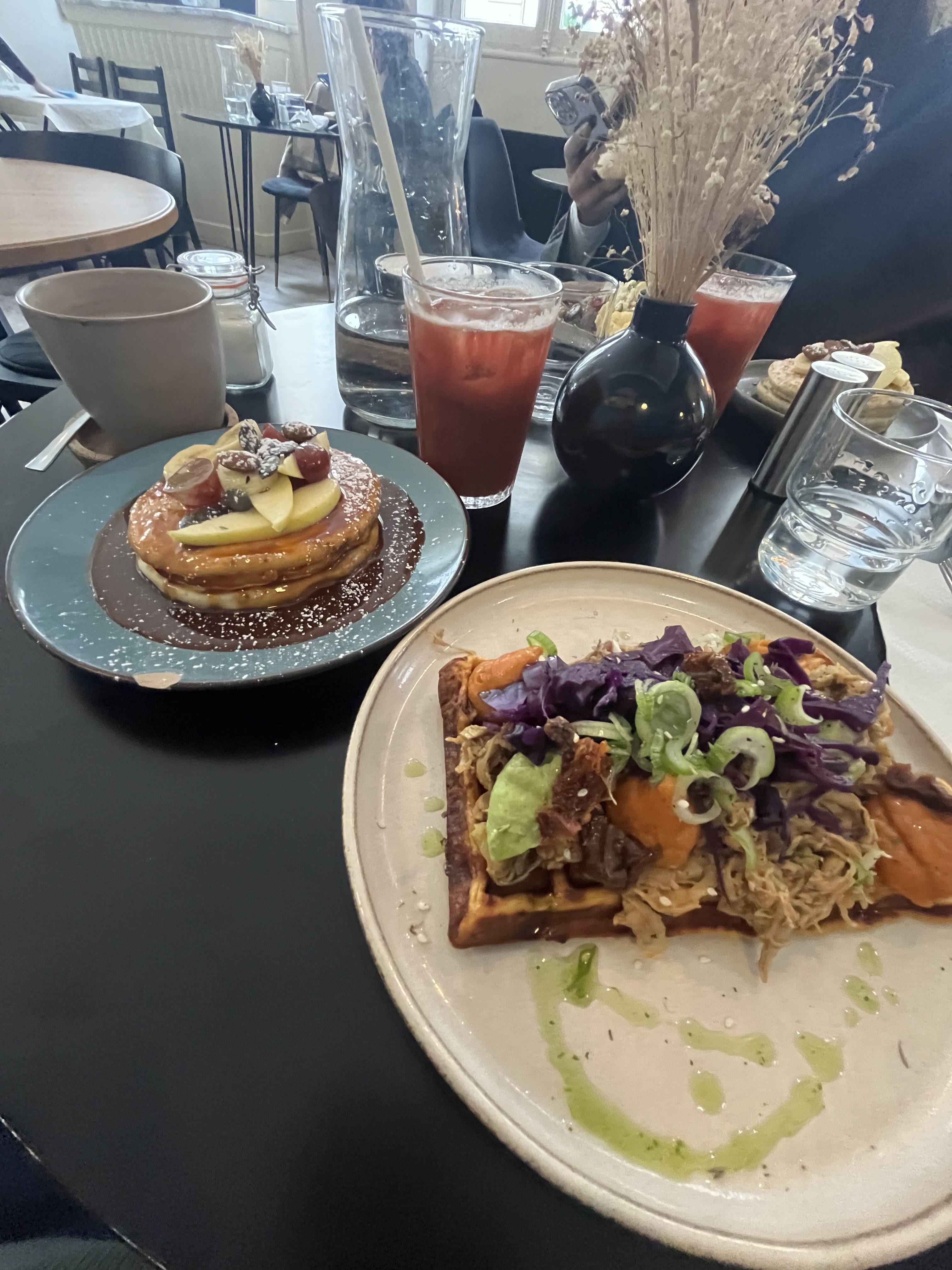 Très bon brunch ! 🌼 On s’est régalé, et en plus de ça c’est Halal, mon copain a pu manger de tout 🥹 Et moi, un petit brunch végétarien 🌱