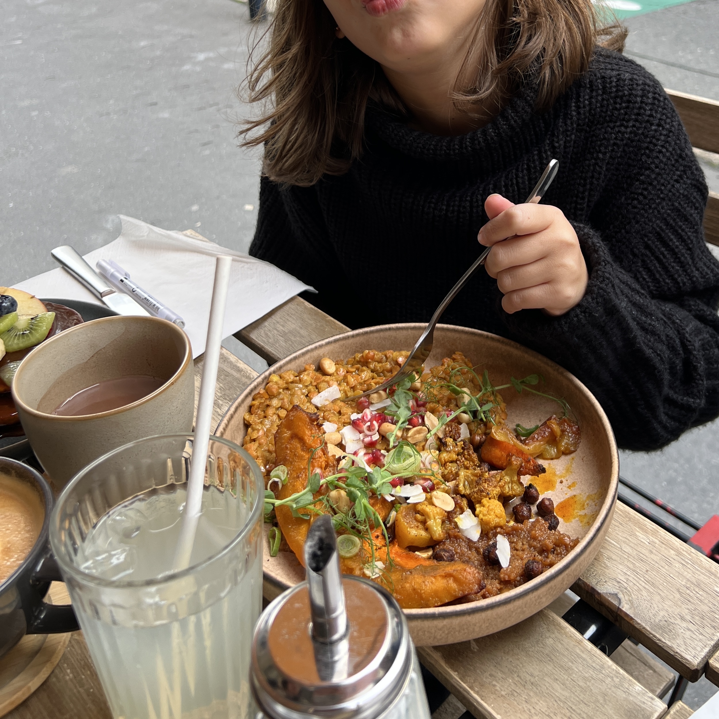 Nourriture : le brunch est un délice avec de grandes portions et des produits frais. Le gros + : il y a des alternatives vege, sans gluten, vegan et on nous demande s’il y a des allergies spécifiques. Seul point négatif, j’ai pris le menu vege et je trouve que la brioche était un peu trop épaisse. Personnel : hyper gentil, souriant, agréable et à l’écoute. Lieu : Possibilité de manger à l’intérieur et à l’extérieur, accessible à pied, en transport en commun et en voiture (meme si en fonction du jour et de l’heure il faut un peu chercher pour se garer). Je recommande +++