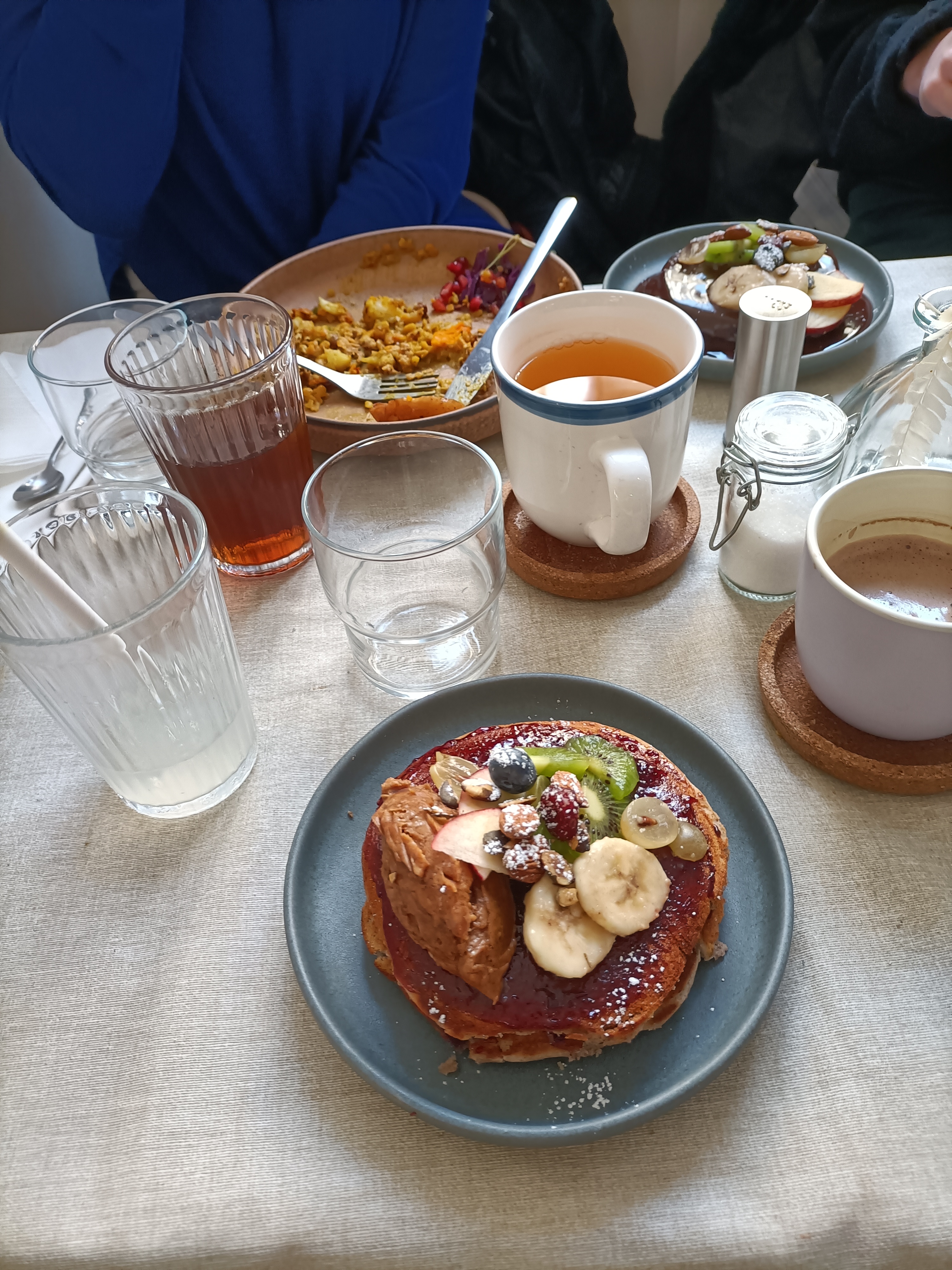 Brunch option vegan et sans gluten, plat salé très bon avec boisson chaude végétale et un thé glacé très très bon. Petit bémol sur les pancakes vegan et sans gluten, un peu sec à mon goût avec le beurre de cacahuète, à tenter avec sirop d’érable. Brunch VG pour la collègue qu’elle a adoré, je recommande vivement cette adresse. Le cadre est top, petite terrasse pour l’été et équipe aux petits soins. Allez-y !