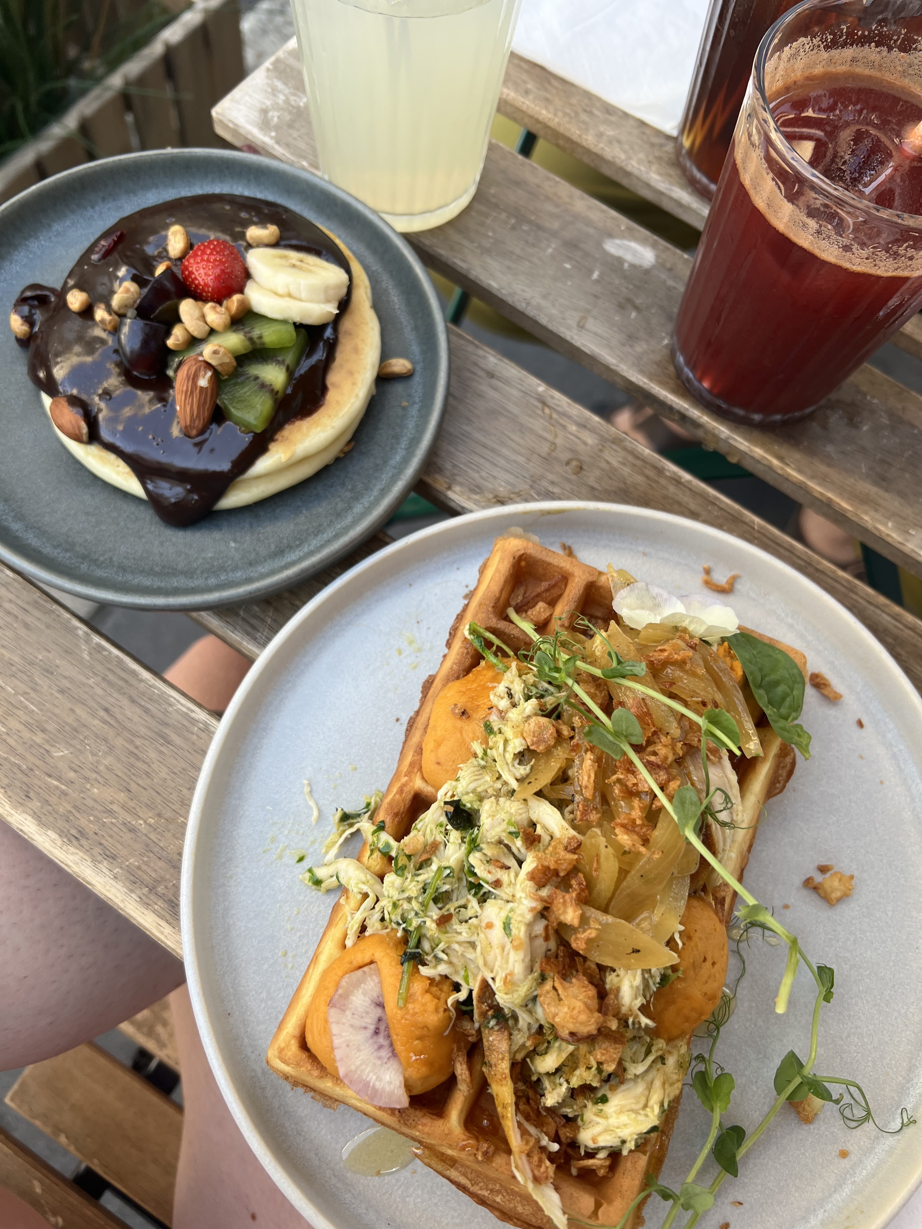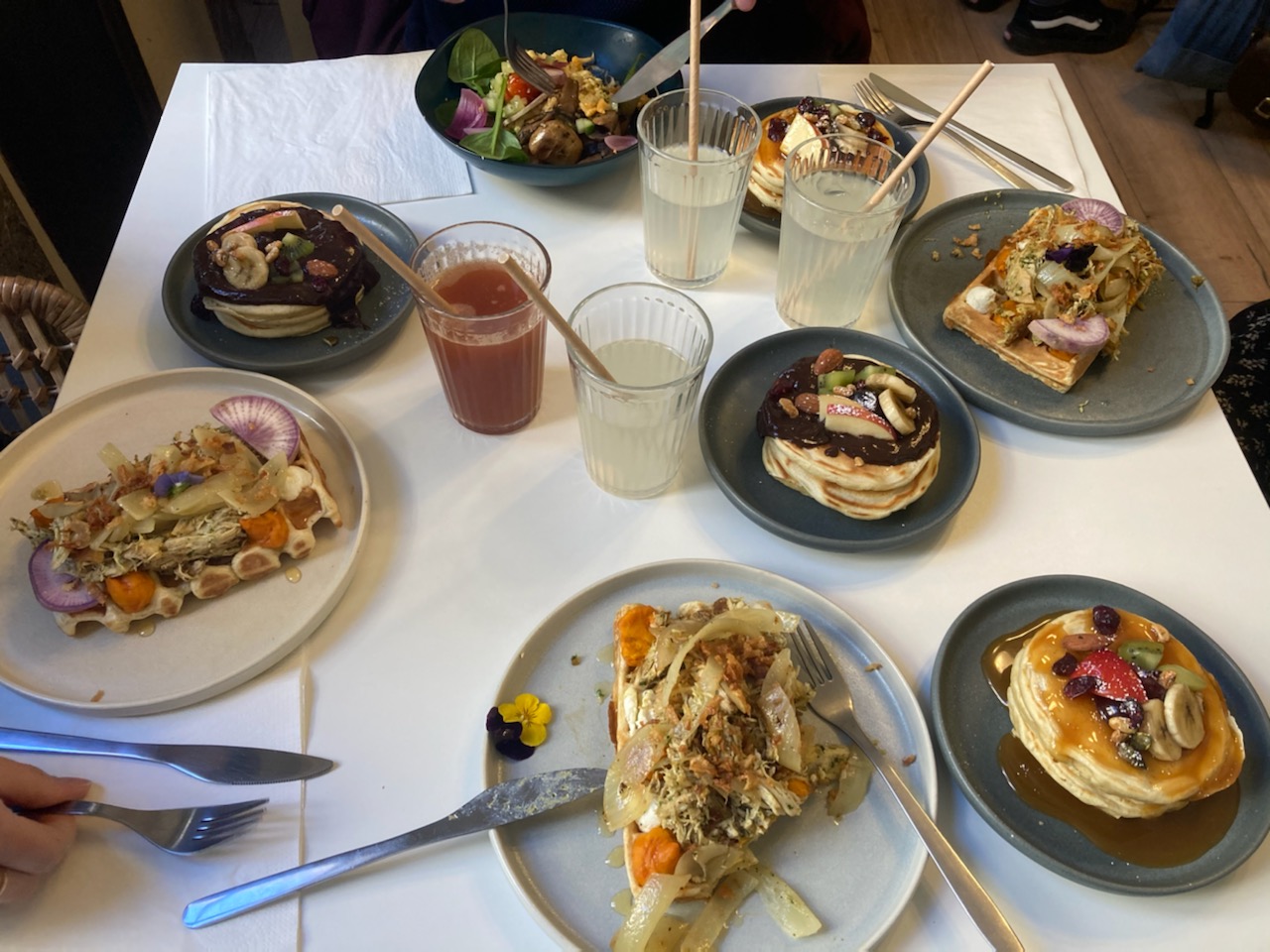 Un brunch absolument parfait qui convenait aussi bien à ma conjointe végétarienne qu'à moi même (carni). Une gaufre à la patate douce généreusement garnie, des pancakes richement agrémenté de caramel au beurre salé. Un bon café et un accueil chaleureux. Allez y les yeux fermés !