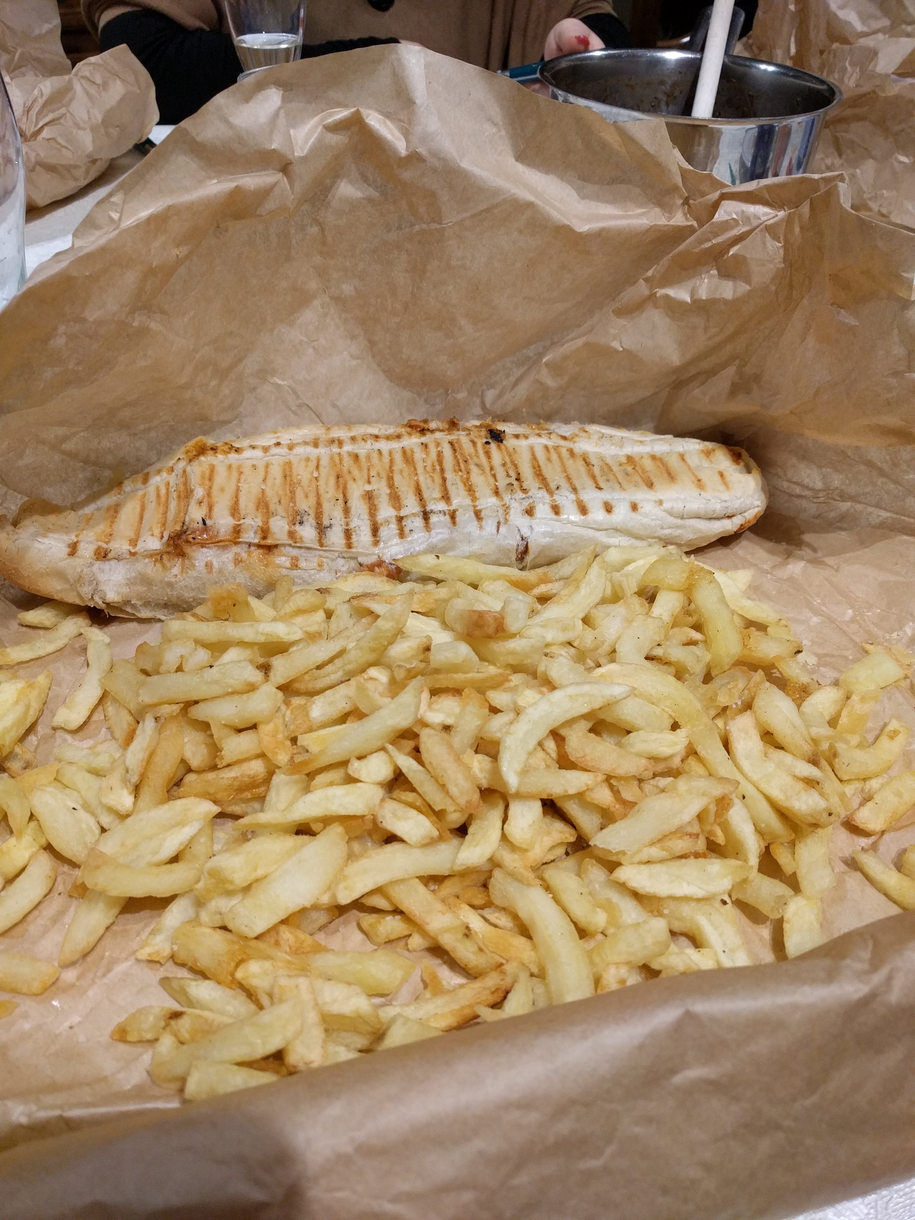 J'y suis allé avec deux amis, on y a bien manger. Les prix sont corrects et les employés sont sympas, la serveuse à qui on a eu à faire était souriante donc +1. En revanche, le pain n'était pas incroyable. Un peu trop croustillant, limite dur. L'aspect esthétique de la friterie n'est pas incroyable. Alors oui on y va pour manger mais bon, pour moi le côté esthétique à son importance. Et un effort sur la propreté des table pourrait aussi être fait.