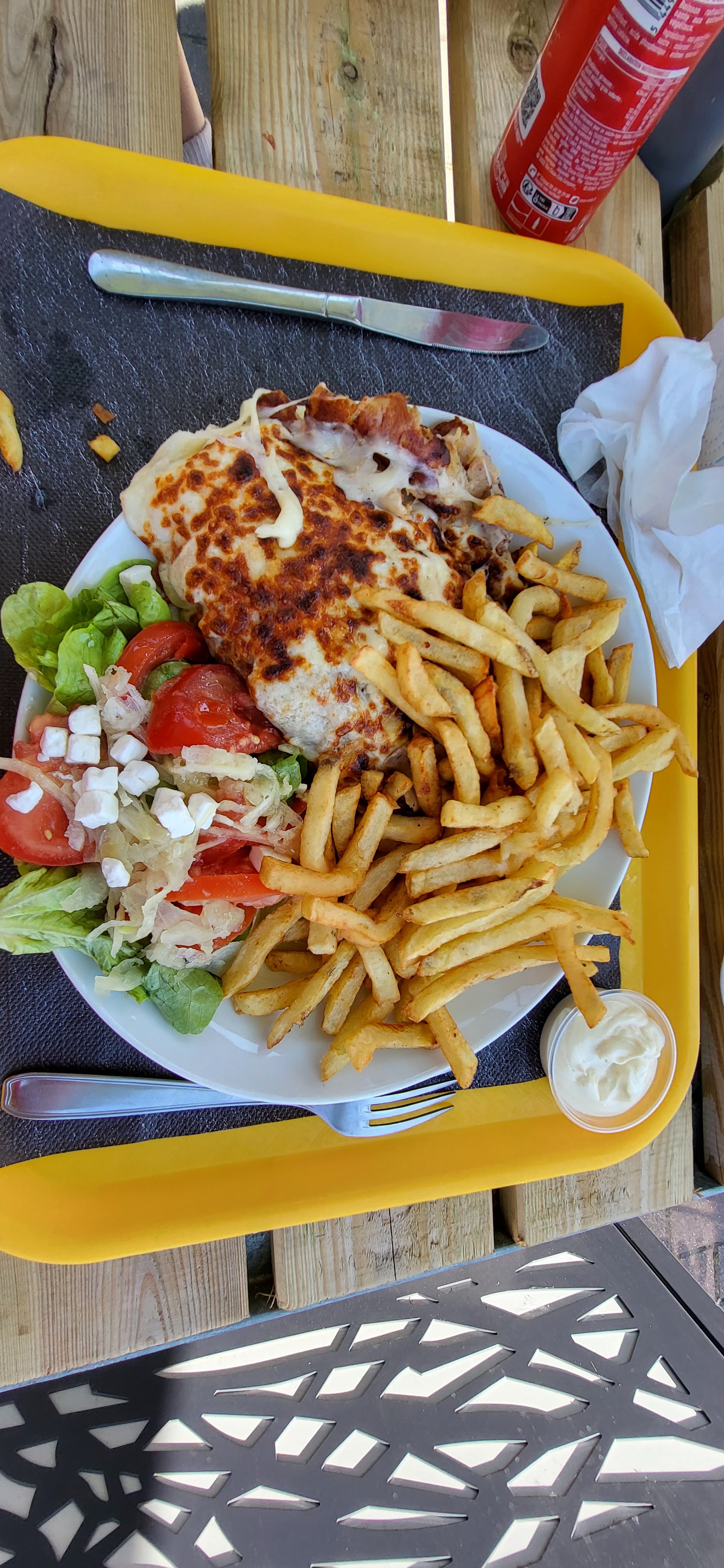 Trop copieux. Du coup, c'est dommage de jeter... mais 3 fois qu'on se fait plaisir entre collègues de boulot. Frites bien cuites 😀