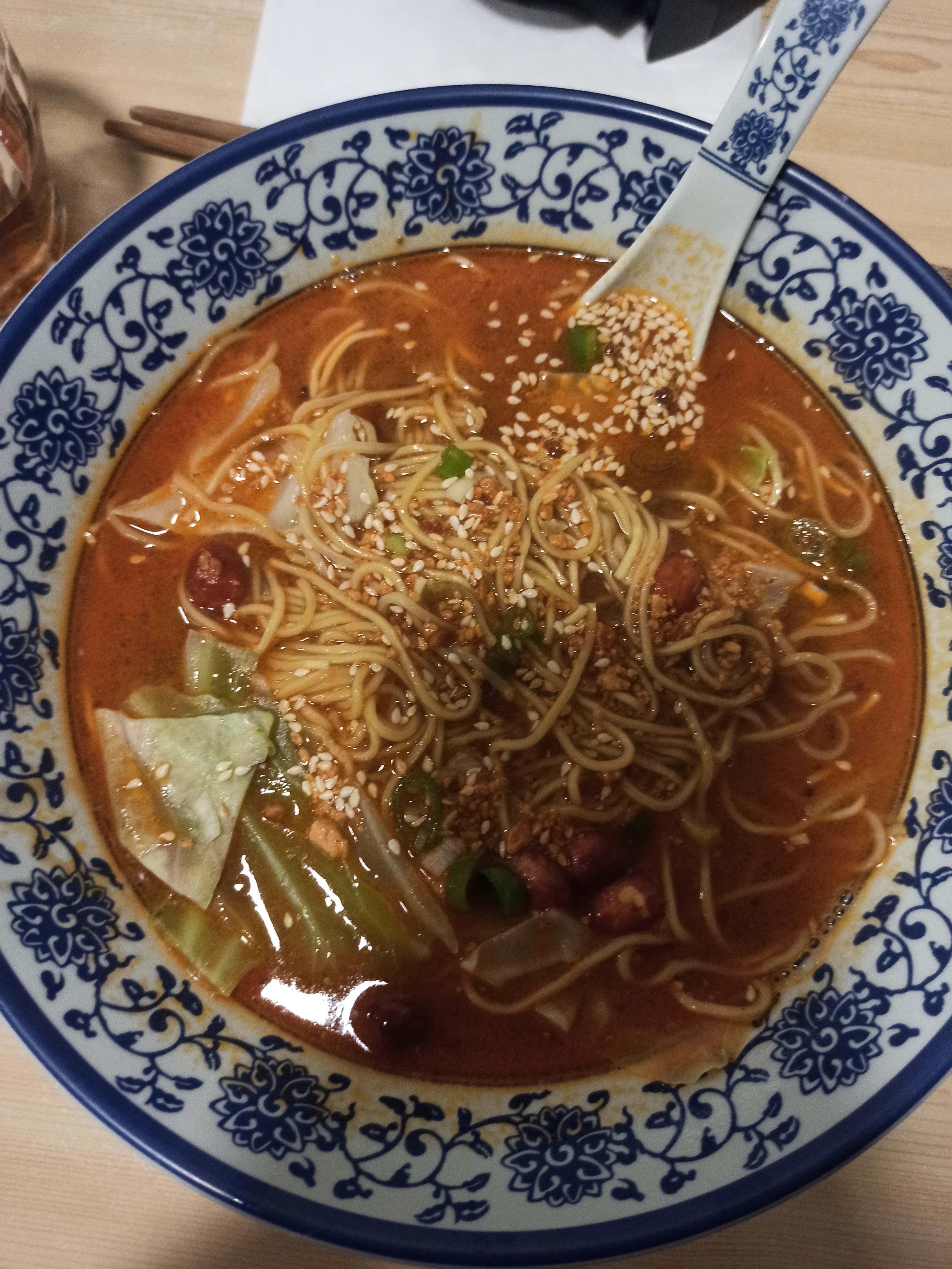 Bouillon Sichuan et nouilles vraiment délicieux ! Raviolis trop cuits dans la soupe mais farce très bonne. Experience 4 étoiles parce que la serveuse a tenté de placer un client arrivé après nous alors que nous étions devant.