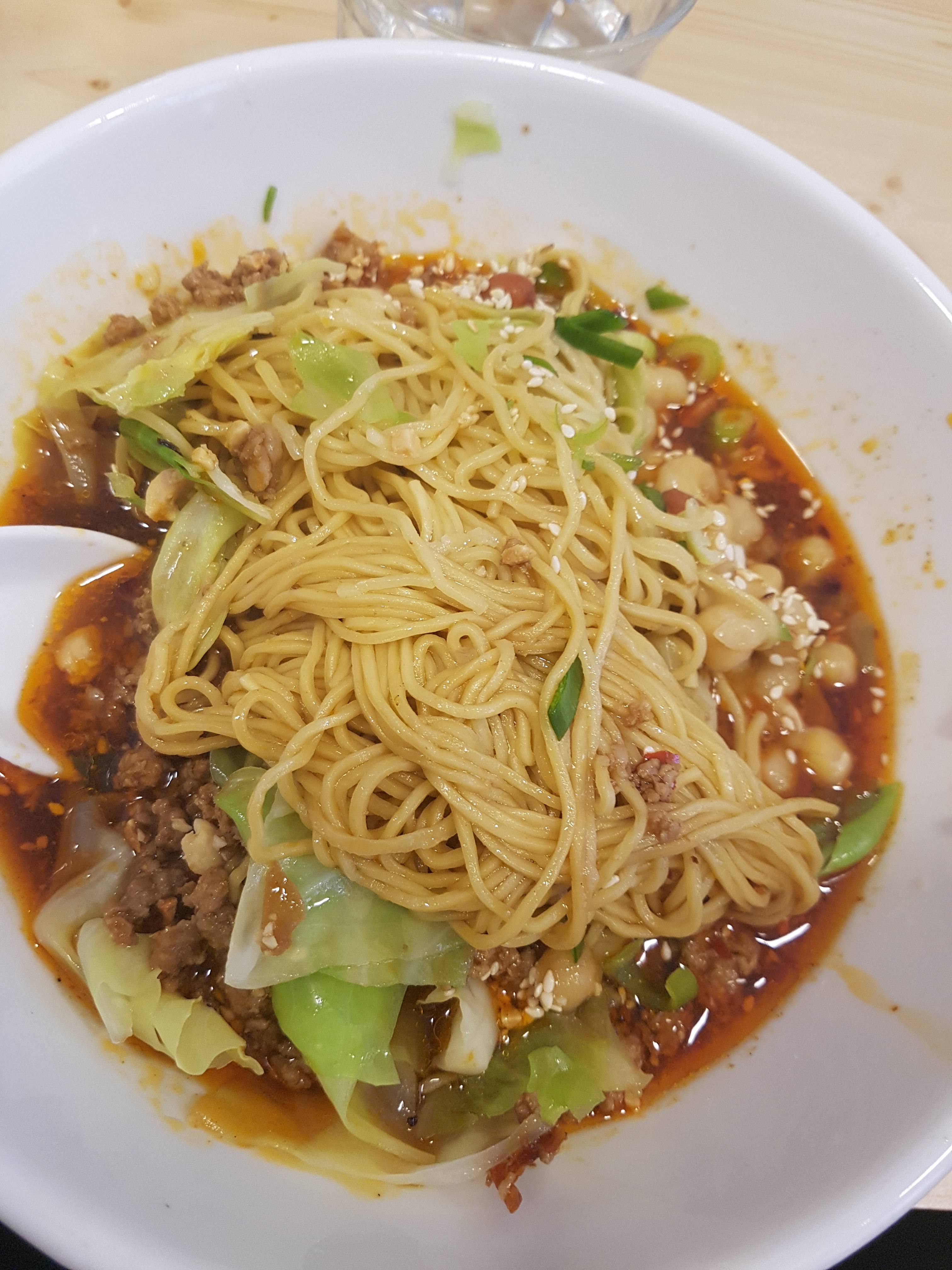 Très bon rapport qualité prix. Un restaurant pour ceux qui aime et/ou supporte le piment. Service rapide et les plats sont bien présentés. 😁 On a pris les nouilles froides, les nouilles au bœufs et au porc haché. J'ai préféré les nouilles froides car plus épaisse et qu'il y avait plus de goût. Malheureusement, on était placé à côté d'une voiture et qu'il y avait des petits insectes qui volaient autour.