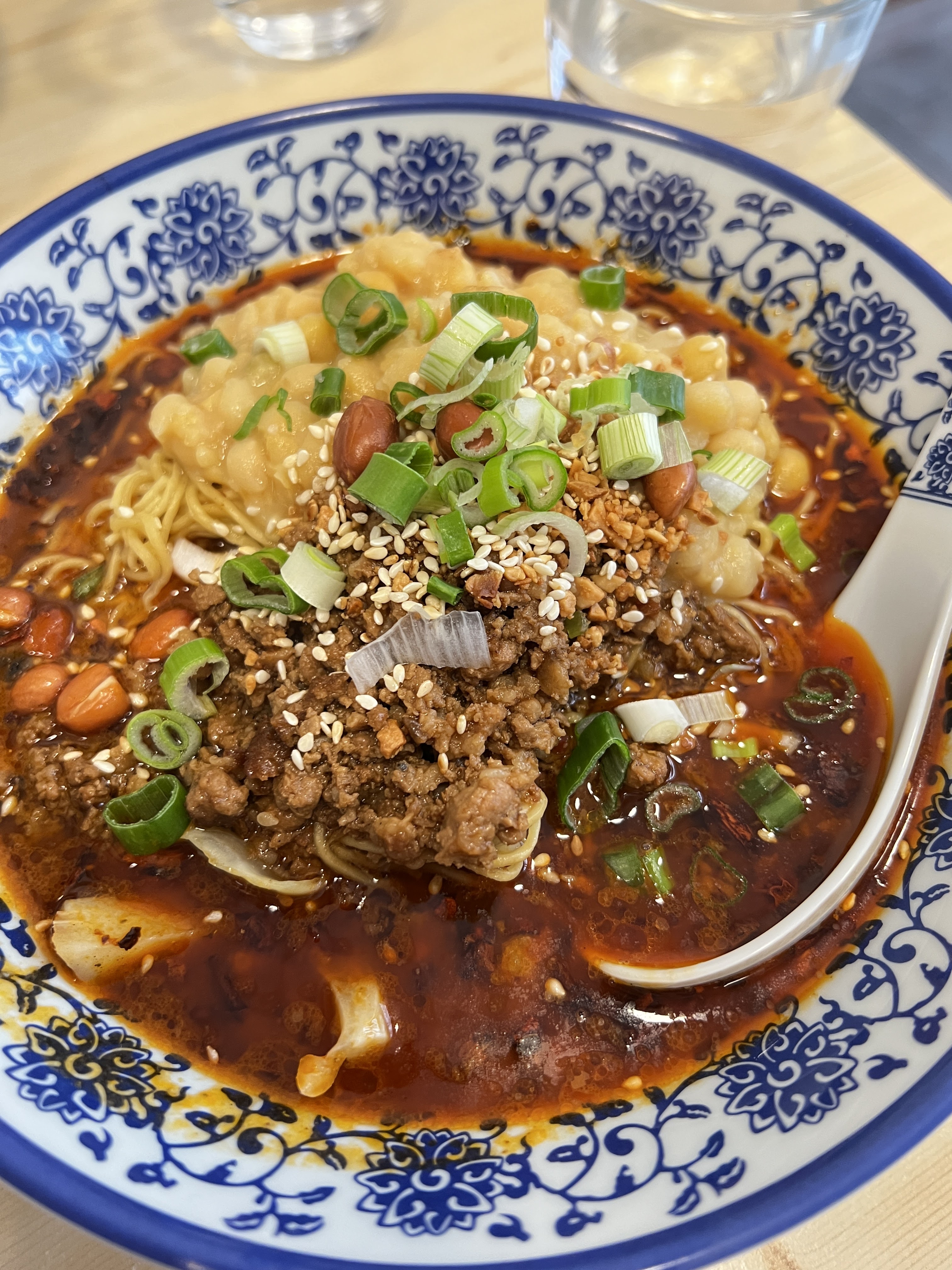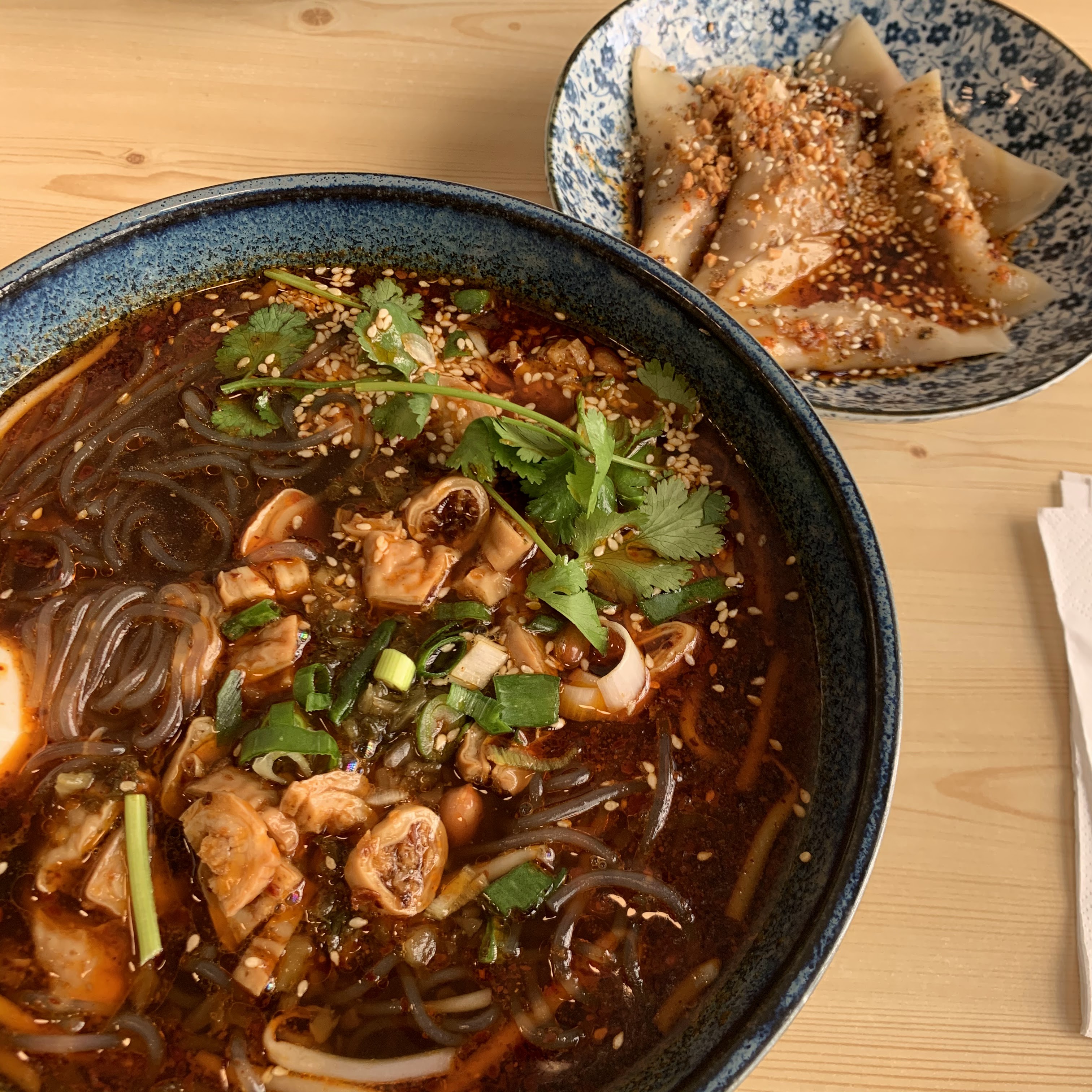 Petit restaurant sichuanais avec quelques plats seulement à la carte : délicieux raviolis froids, soupe de nouille avec viande hachée… attention au piment 🔥 Service rapide, très bon rapport qualité prix