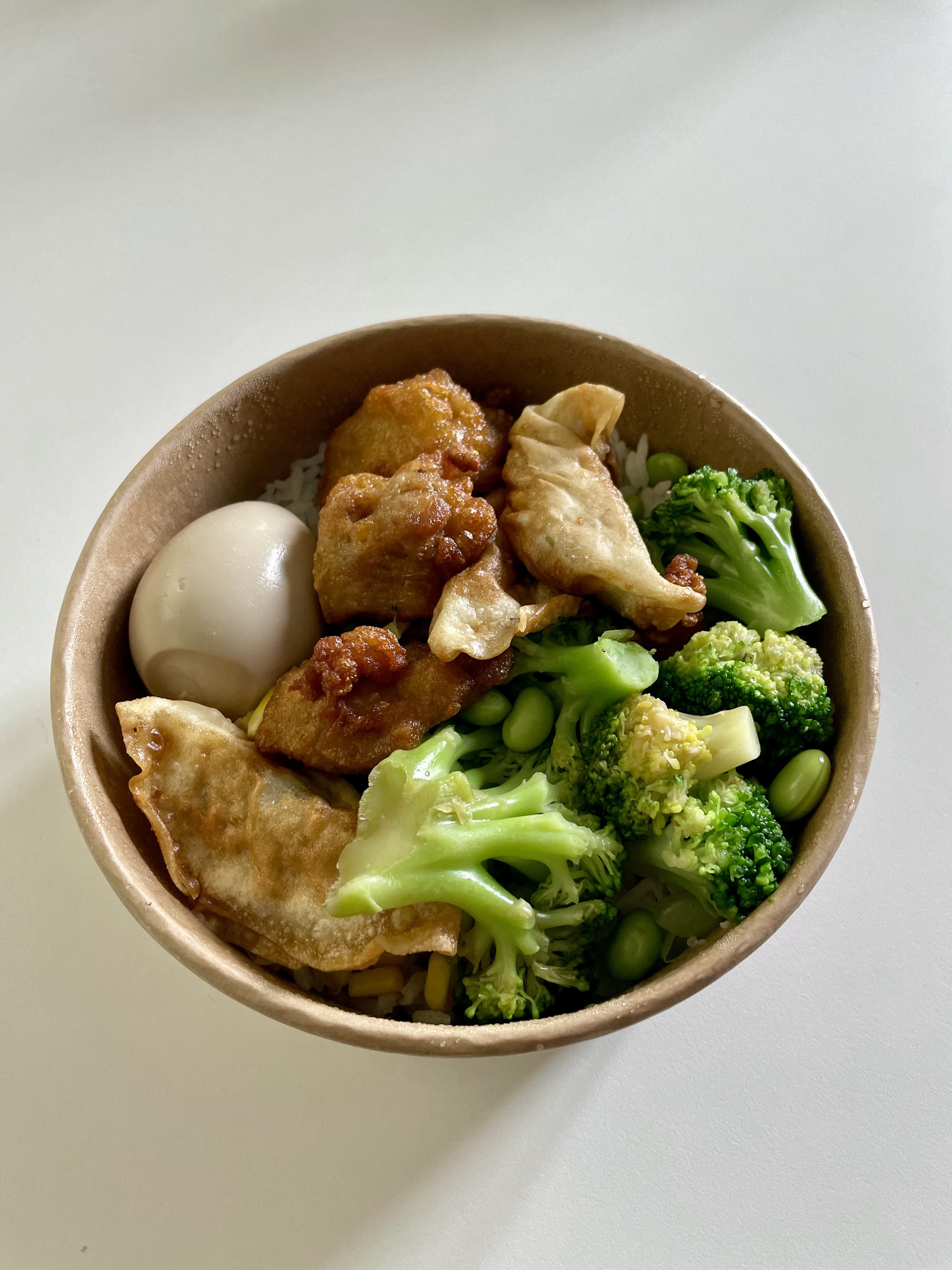 Assez déçu par le bento karaage a emporter. Le poulet frit n’était pas mauvais mais pas vraiment les saveurs et la panure que j’attends pour un karaage. Du riz japonais serait plus approprié pour ce type de plat. Le meilleur était finalement l’œuf mollé qui n’était pas censé être là (tamagoyaki sur le menu)