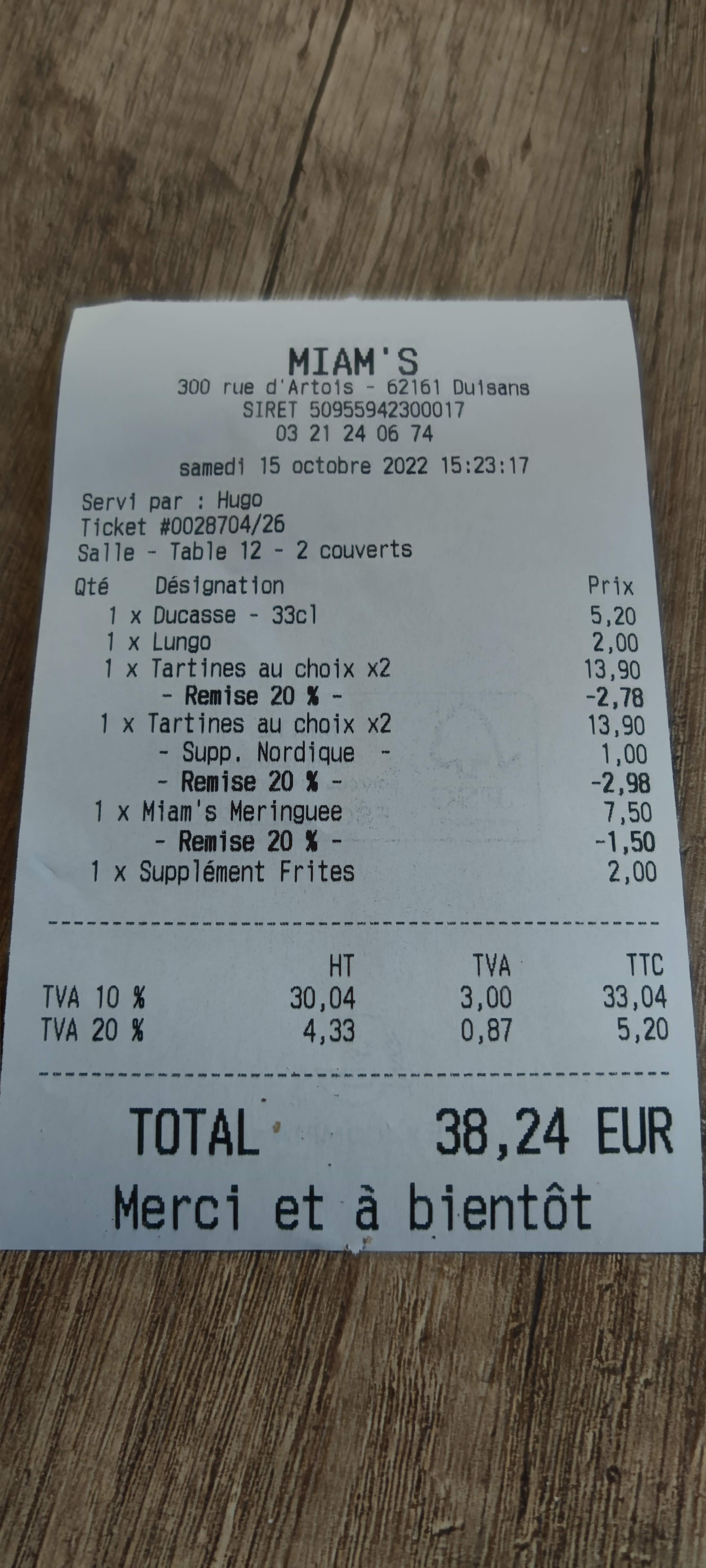 Très bonne expérience au Miam's. Nous avons tous bien mangé. Les tartines sont bonnes et servies en quantité raisonnable. L'accueil et le cadre sont agréable. Nous recommandons ce restaurant.
