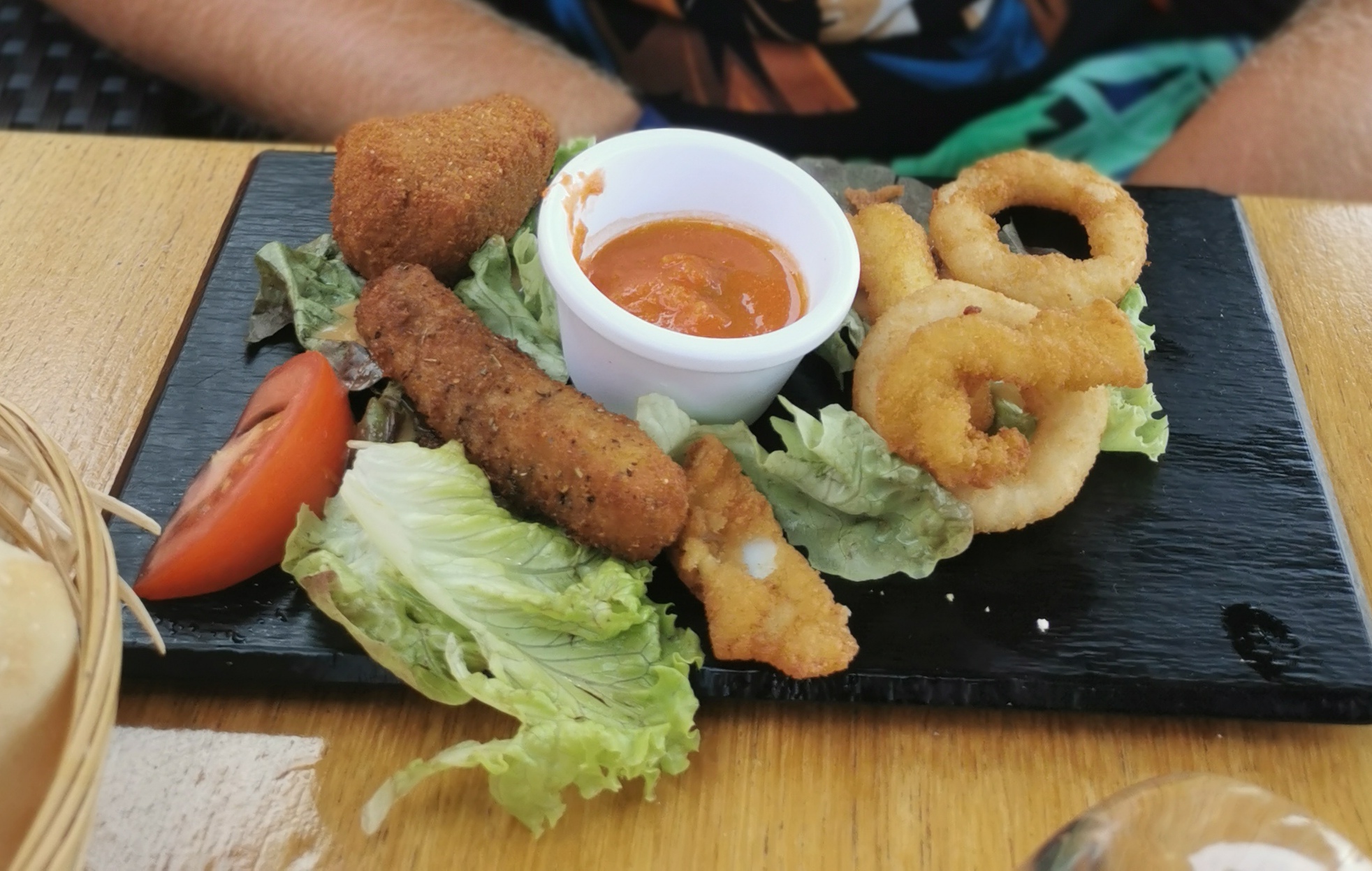 Sos une catastrophe, j’ai pris un plateau de fruits de mer…. Des moules qui étaient censés être gratinées mais qui baignaient dans l’eau de décongélation, des crevettes maigre et sans aucun goût, des toasts pas toaster avec une espèce de sauce au ketchup. 25€ pour ça : déception. J’en ai fais part à la serveuse qui s’est excusée à la vue du plateau..