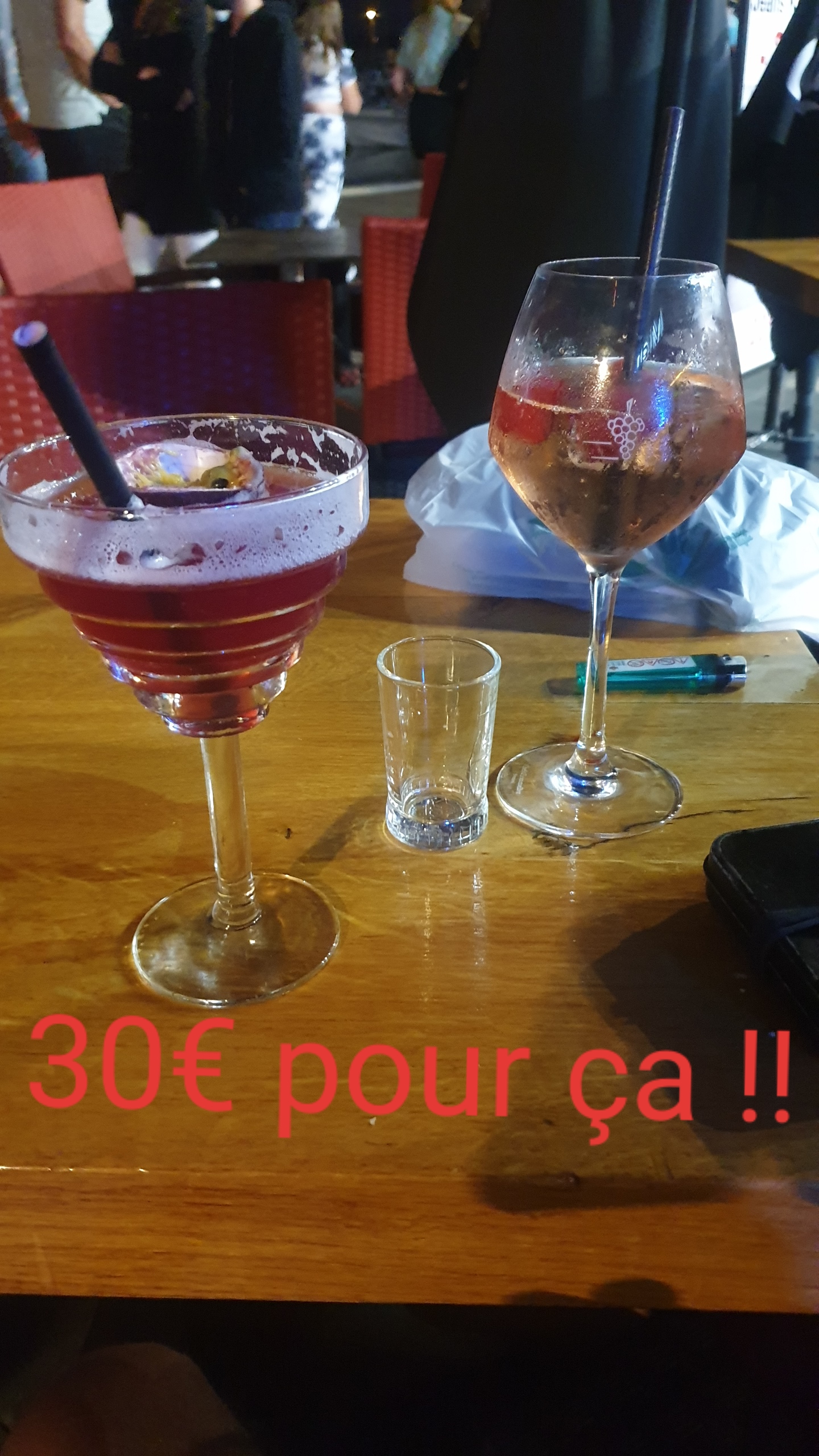 Je cherchais un endroit pour boire un bon cocktail avec mes amis. J’ai cru prendre un grand cocktail dans un bar. Au final je me suis retrouvé chez Carrefour dans le rayon boisson, de l’eau et de la grenadine dans un grand verre pour seulement 10€, grosse affaire, sautez sur l’occasion !