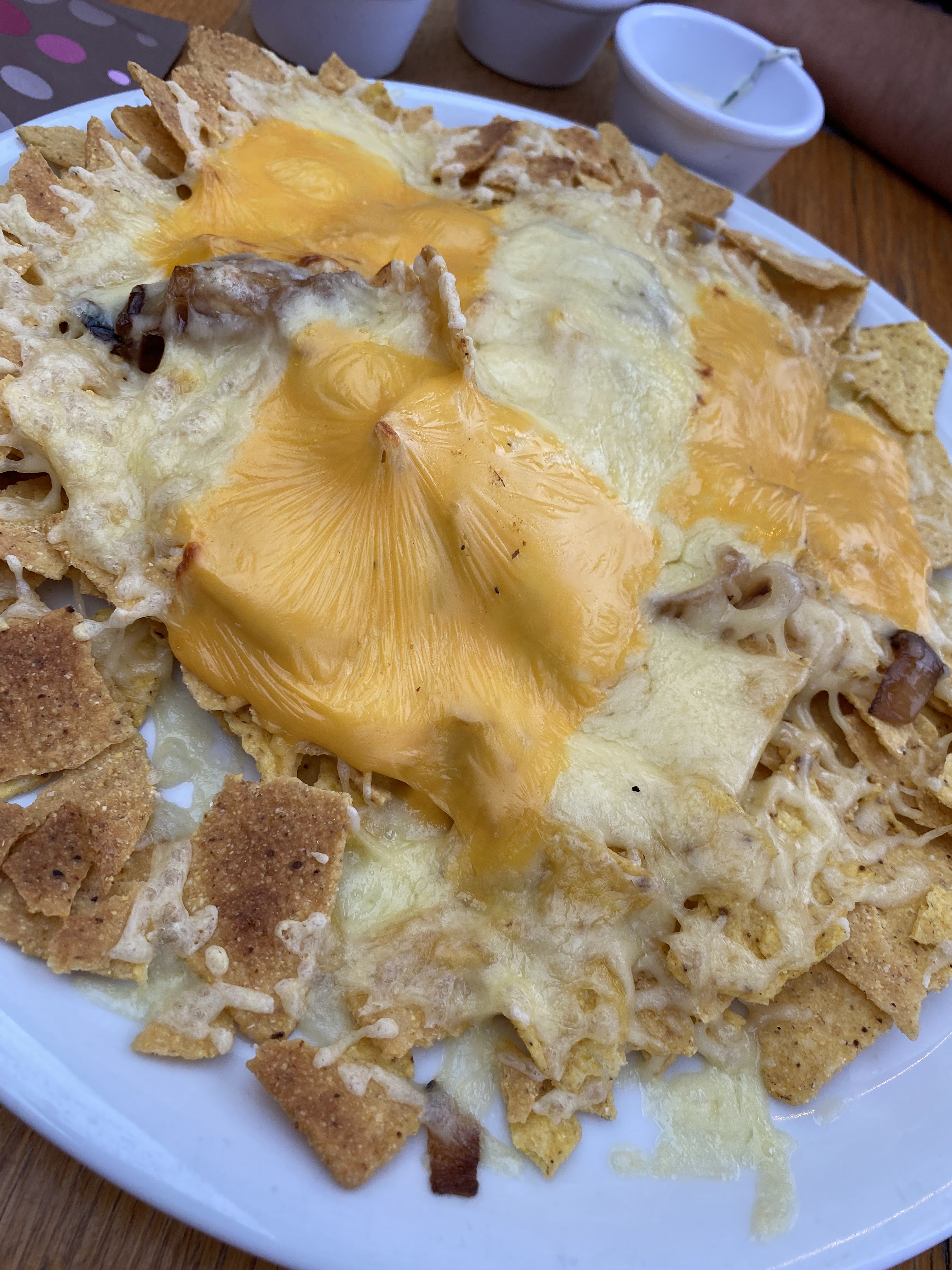 VRAIMENT DÉÇU !!! 23€ pour une double Jagerbomb qui ne fait même pas simple avec une assiette de Nachos avec 3 tranche de fromage a peine fondue au milieu de chips sans le moindre goût . Sans parlez du guacamole qui n'est clairement pas fait maison . Je ne recommande ce bar a personne ... Vraiment pas !