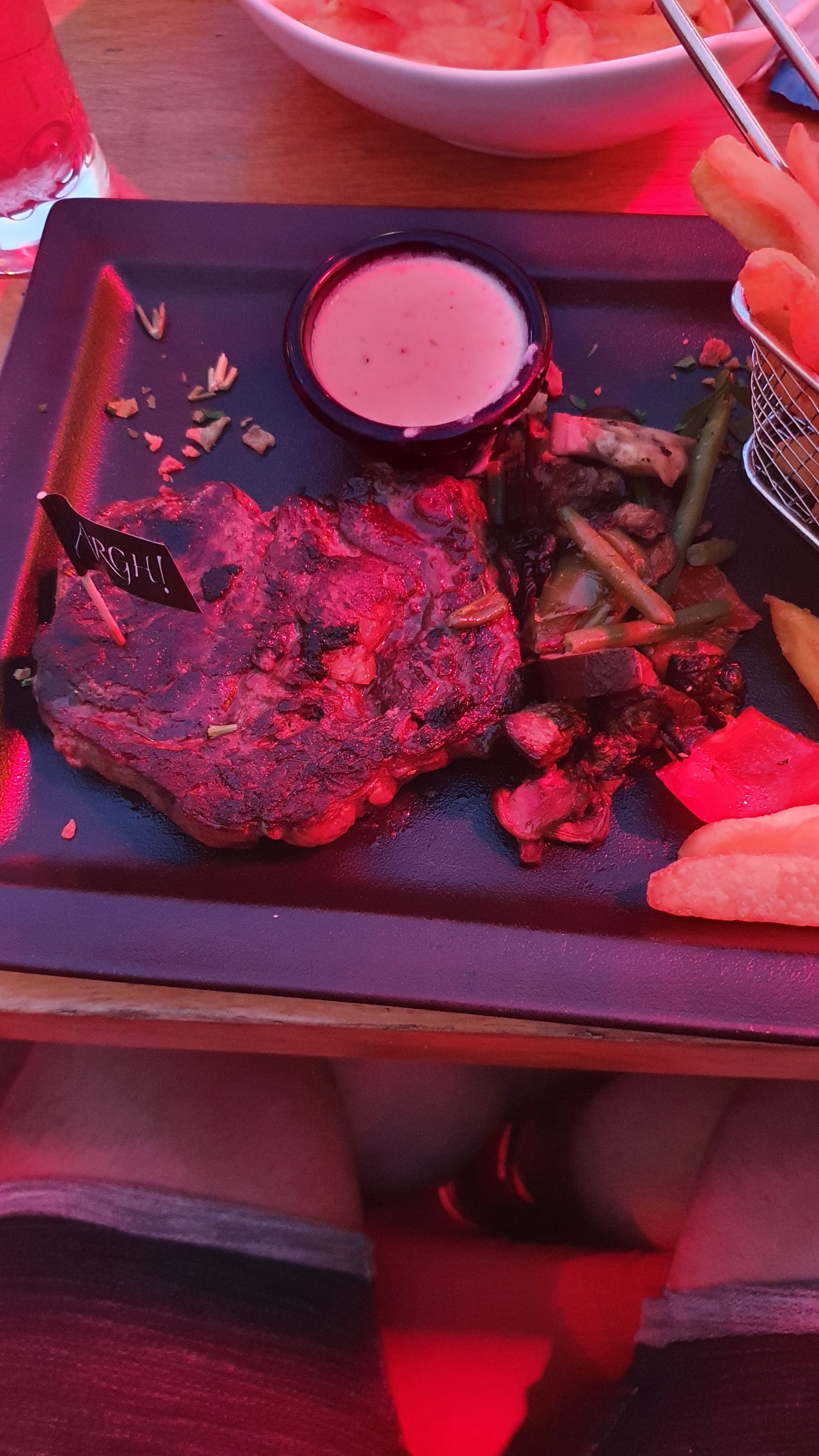 Des toilettes sales, du vin servi chaud qu’on nous a pas fait goûter après contestation on nous a proposé un sac de glaçon alors qu’on était servis (pour un ROUGE… et encore dans des verres en plastique), des ribs moyen mais bon à la limite. Aucun geste par rapport au vin. On a été servis dans une ruelle où on entendait la musique du bar à côté mais pas celle du restaurant Je déconseille