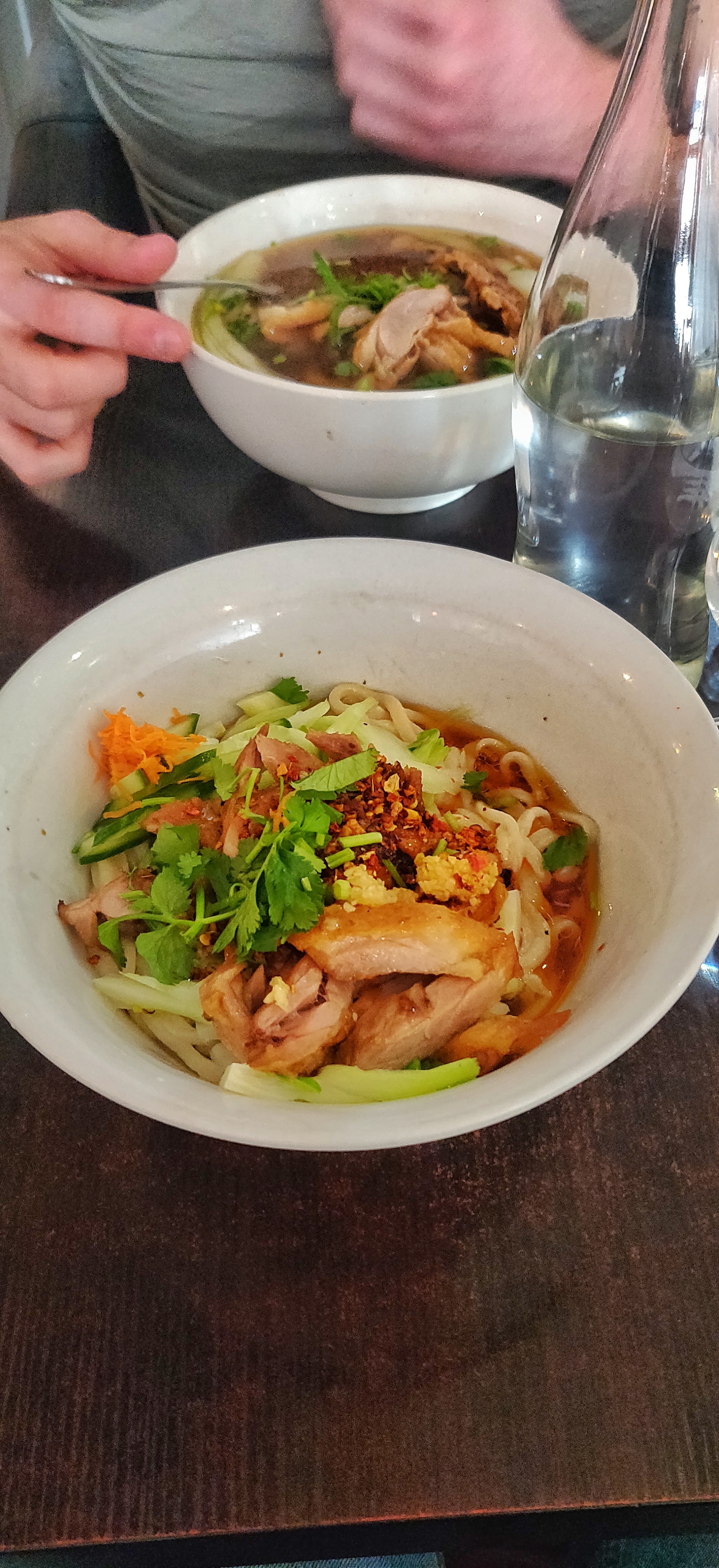 Soupe chinoise et vietnamienne avec nouilles faites maison. Vraiment très bon. Et pas cher.
